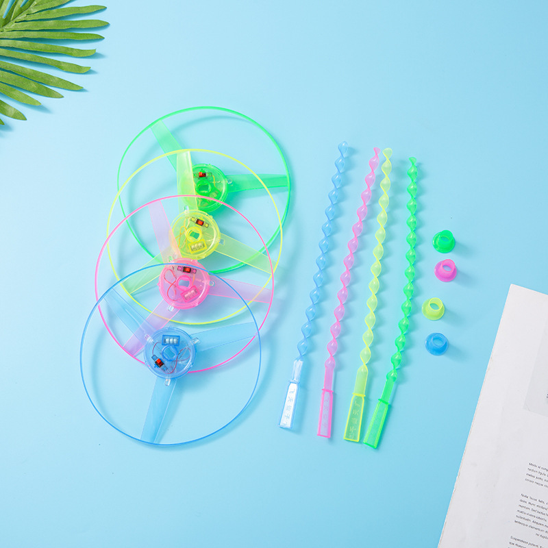 【使用方法】:把圆盘套进杆子到最底端,用小圆圈一推,飕就发射啦,根据用力大小决定飞的高低,一般能飞六七米高,爸爸妈妈和宝宝,小伙伴比比赛,看看谁飞的高。(操作简单 年龄大小 均适合)