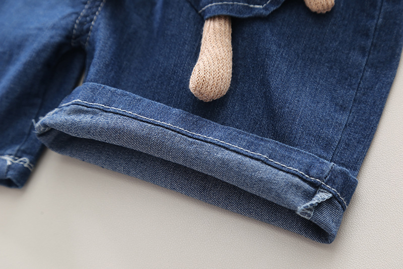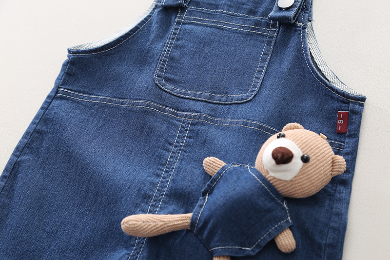 소년의 세련된 귀여운 반팔 세트 여름 새로운 어린이 패션 입체 포켓 곰 서스펜더 바지 세트스토어 가기
