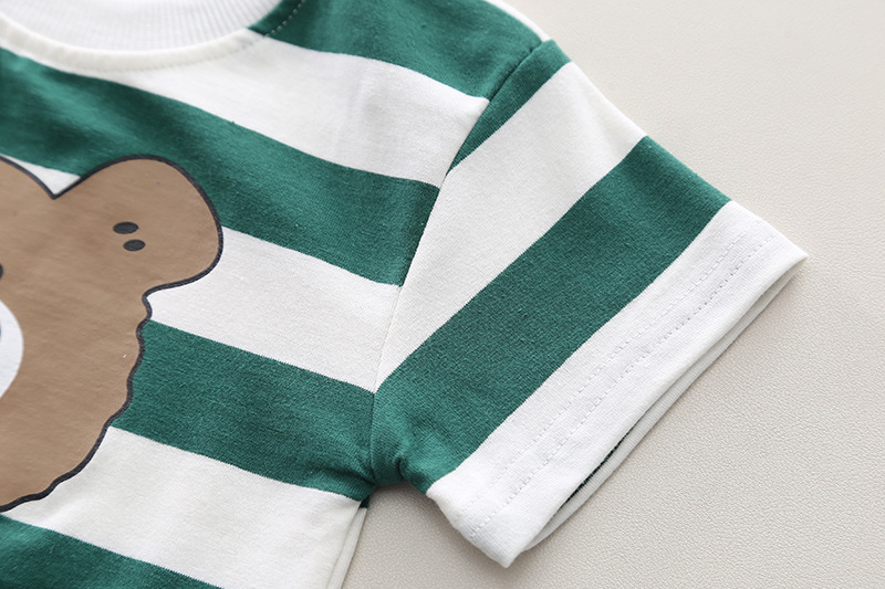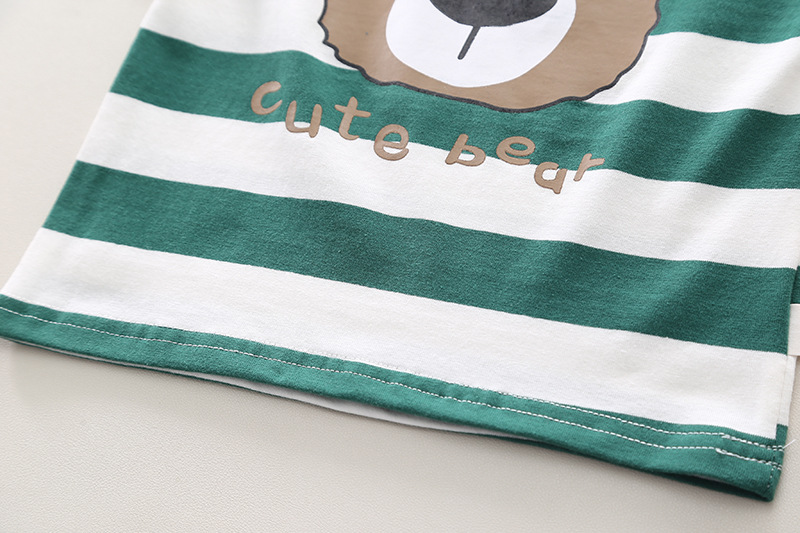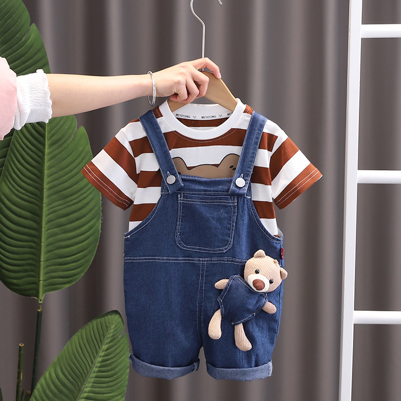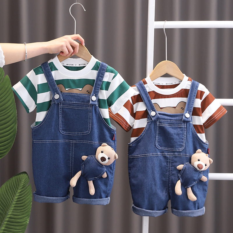 소년의 세련된 귀여운 반팔 세트 여름 새로운 어린이 패션 입체 포켓 곰 서스펜더 바지 세트