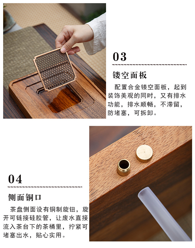 호두나무 건조 차 트레이 통나무 가정용 차 테이블 배수 기능 간편 차 트레이 소형 배수 차 트레이