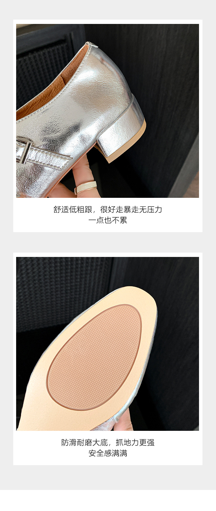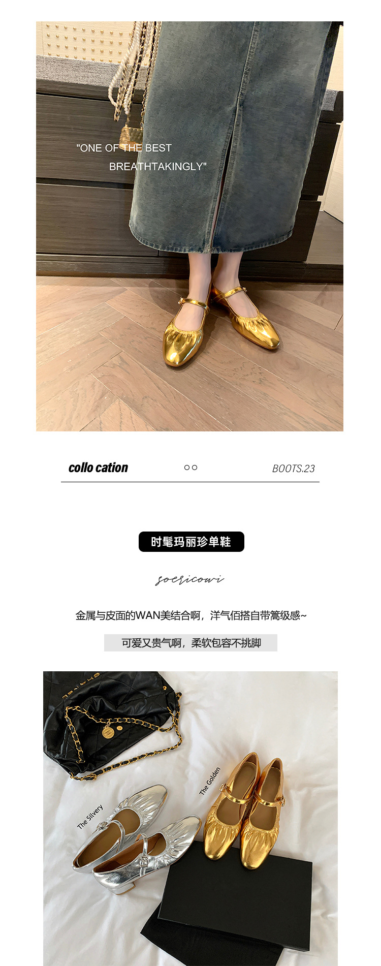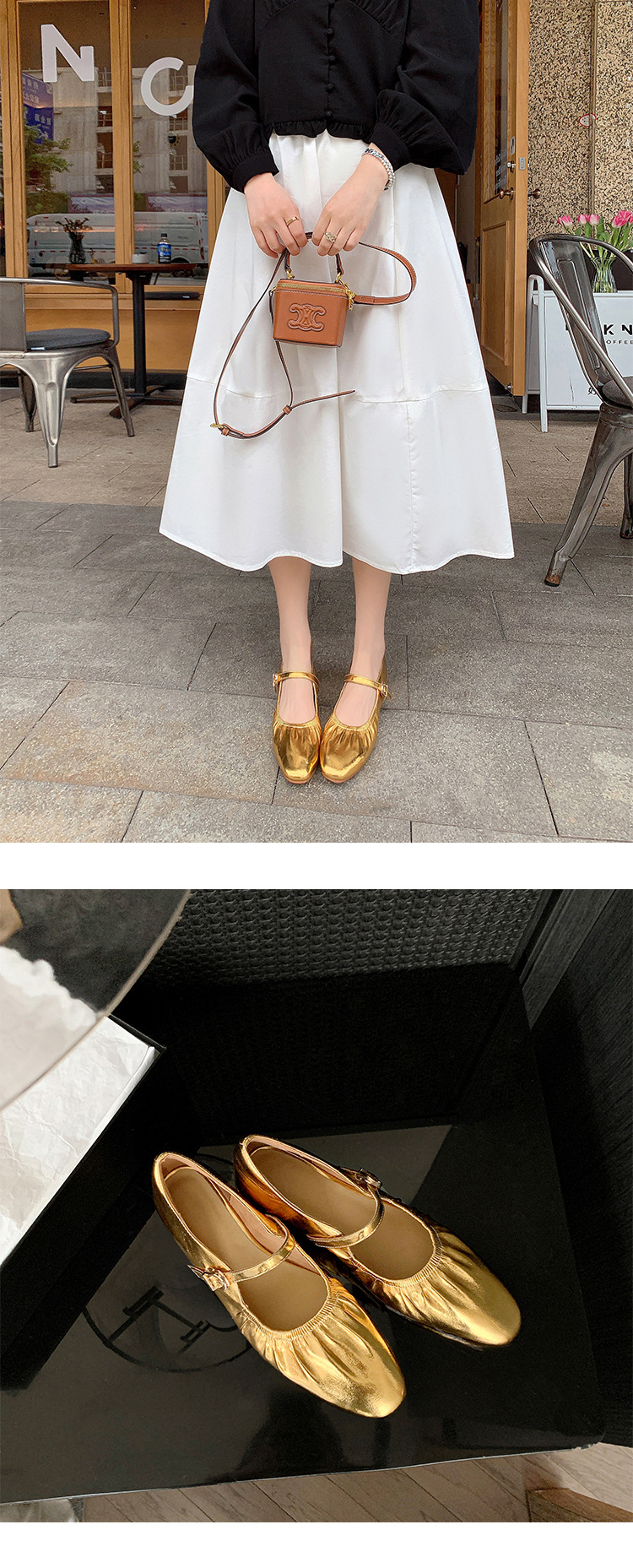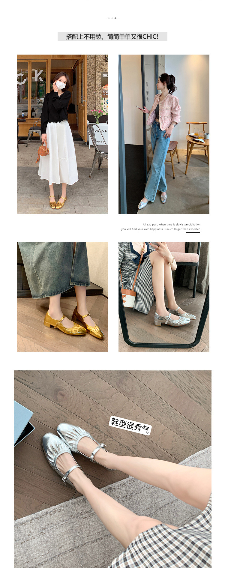 실버 메리 제인 주름 둥근 발가락 청키 뒤꿈치 골든 발레 슈즈 여성 정품 가죽 프랑스 복고풍 힘줄 바닥 2024스토어 가기