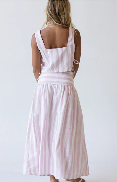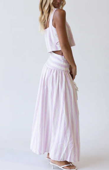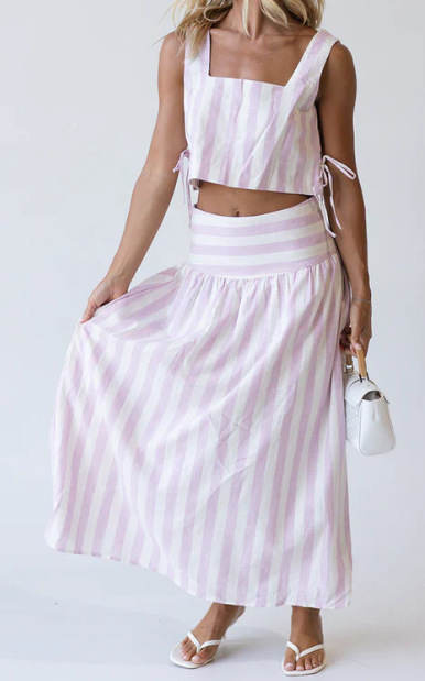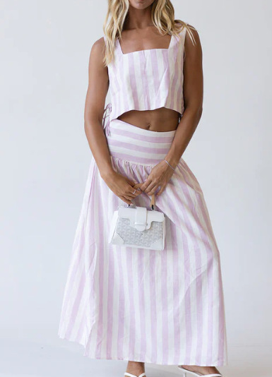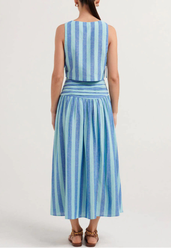 블루 스트라이프 2024 여름 스커트 여성의 우아한 복고풍 기질 슬리밍 A 라인 홀리데이 스타일 스윙 스커트스토어 가기