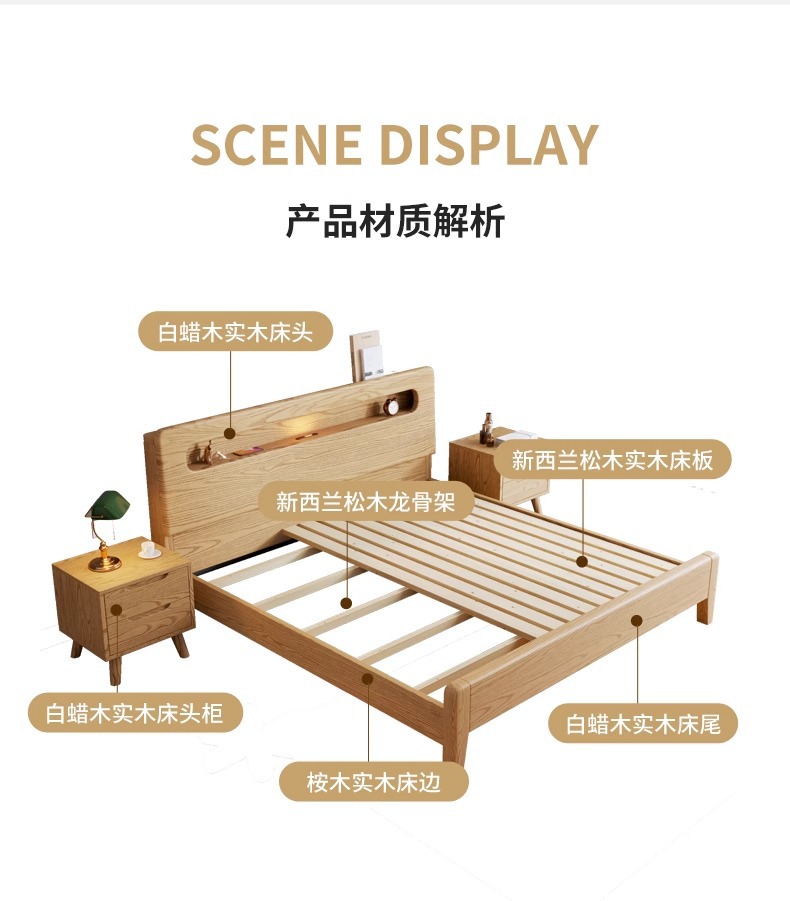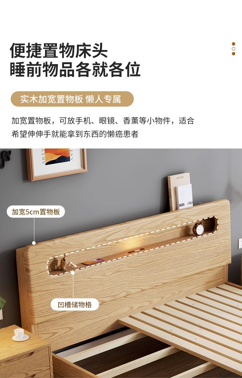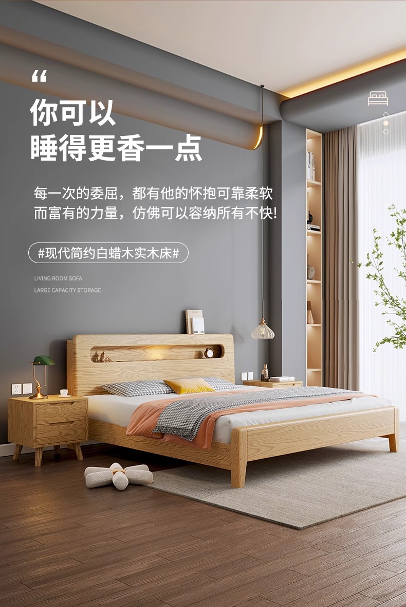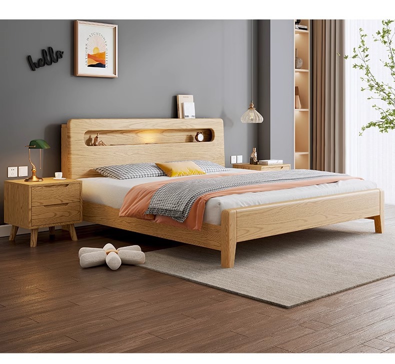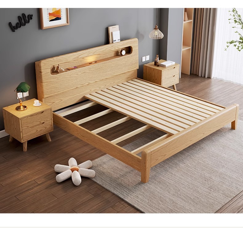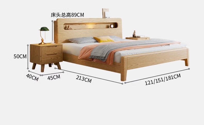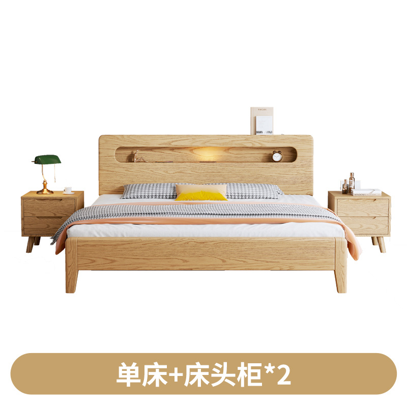 북유럽 재 단단한 나무 침대 현대 미니멀 더블 침대 1.5 m 공주 침대 1.8 마스터 침실 웨딩 침대 경제적