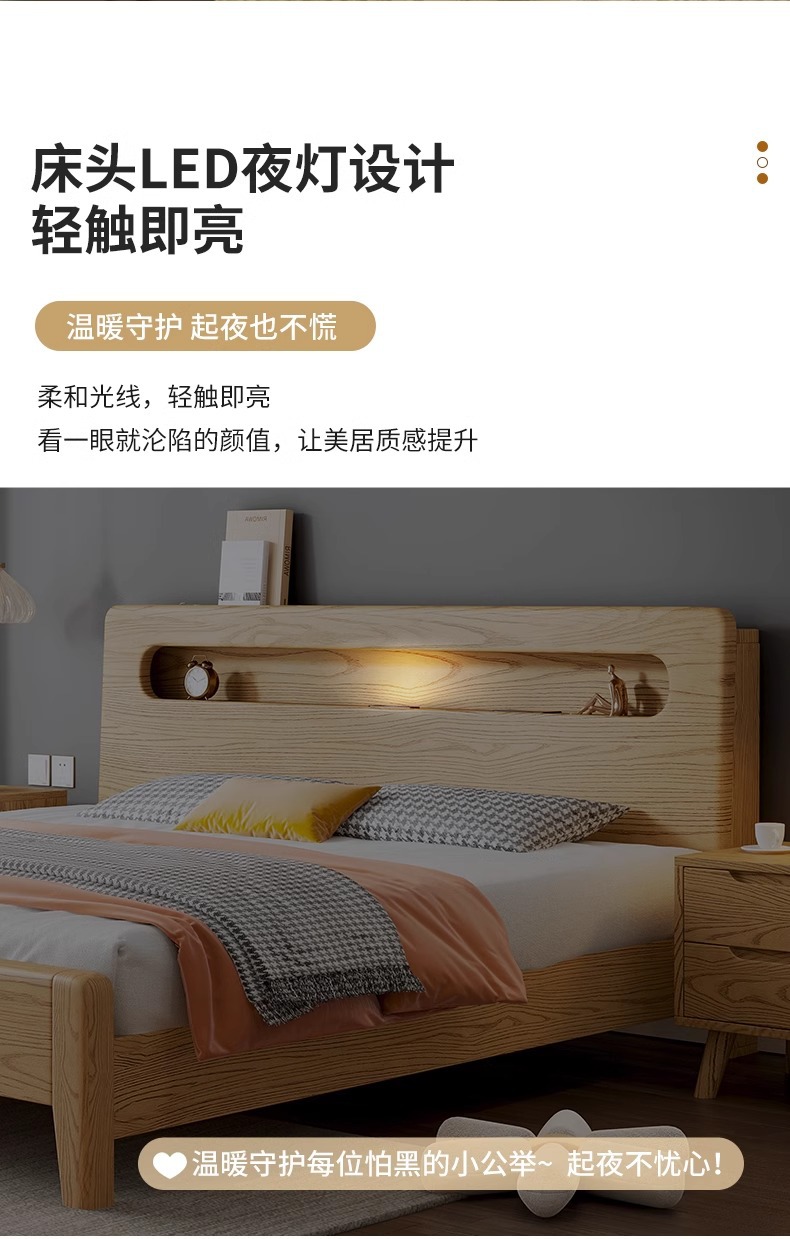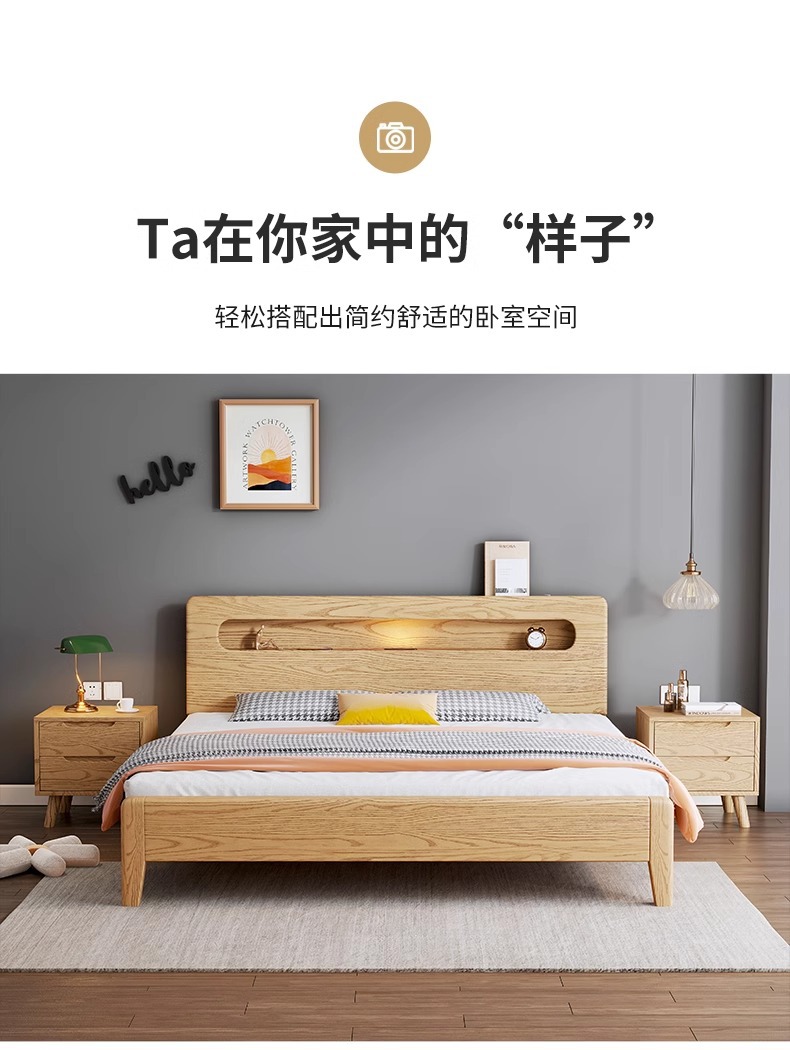 북유럽 재 단단한 나무 침대 현대 미니멀 더블 침대 1.5 m 공주 침대 1.8 마스터 침실 웨딩 침대 경제적스토어 가기