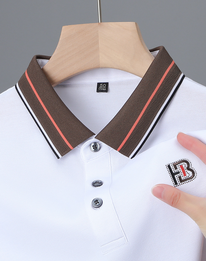 여름 2024 남자 하이 엔드 반팔 머서리 면화 POLO 라인 석 옷깃 최고의 비즈니스 캐주얼 청소년 잘 생긴 티셔츠스토어 가기