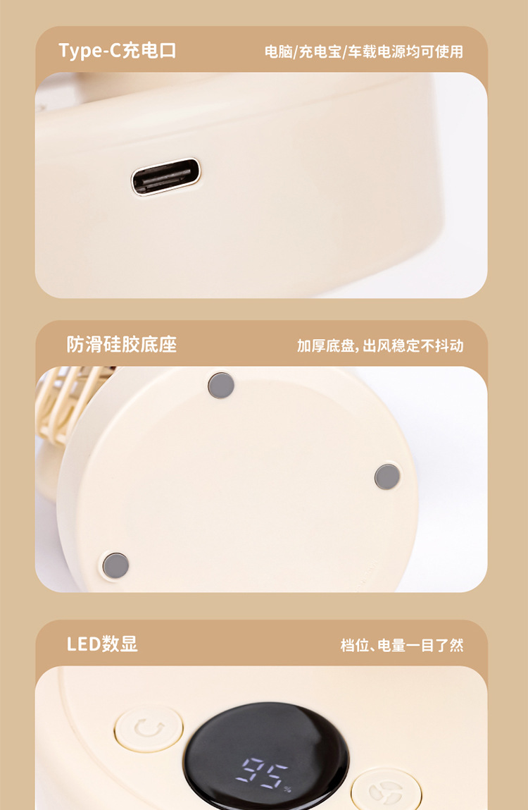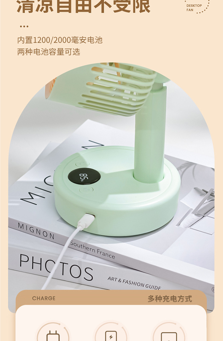 지원 고정 새겨진 로고 그래픽 데스크탑 사무실 저소음 USB 충전 5 디지털 디스플레이 기숙사 휴대용 작은 전기 팬