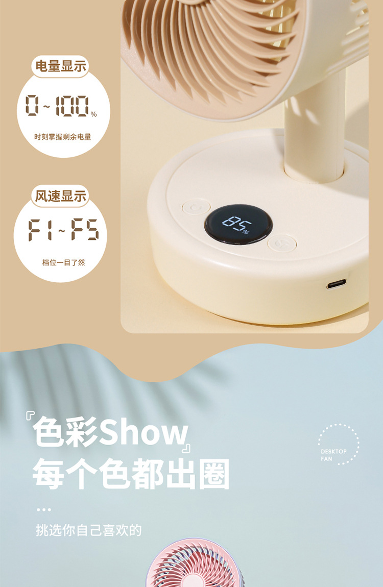 지원 고정 새겨진 로고 그래픽 데스크탑 사무실 저소음 USB 충전 5 디지털 디스플레이 기숙사 휴대용 작은 전기 팬스토어 가기