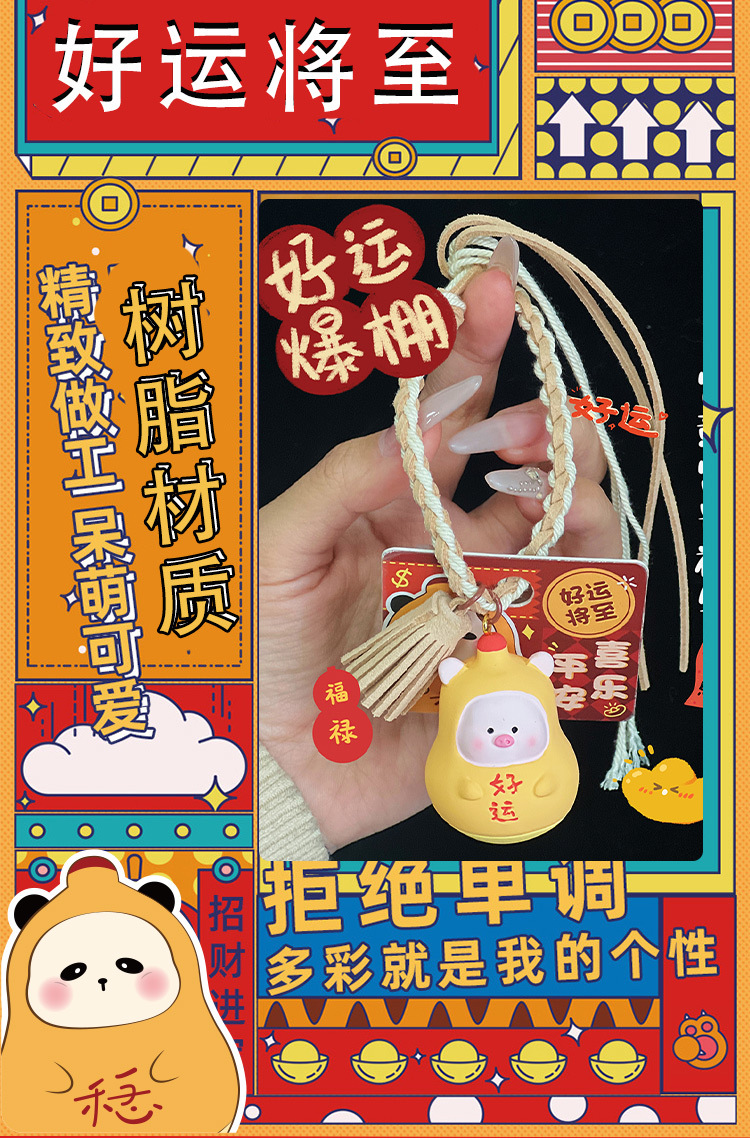슈퍼 Heng 원래 풍부한 조롱박 수지 펜던트 키 체인 작은 선물 돼지 펜던트 동물 인형 키 체인스토어 가기