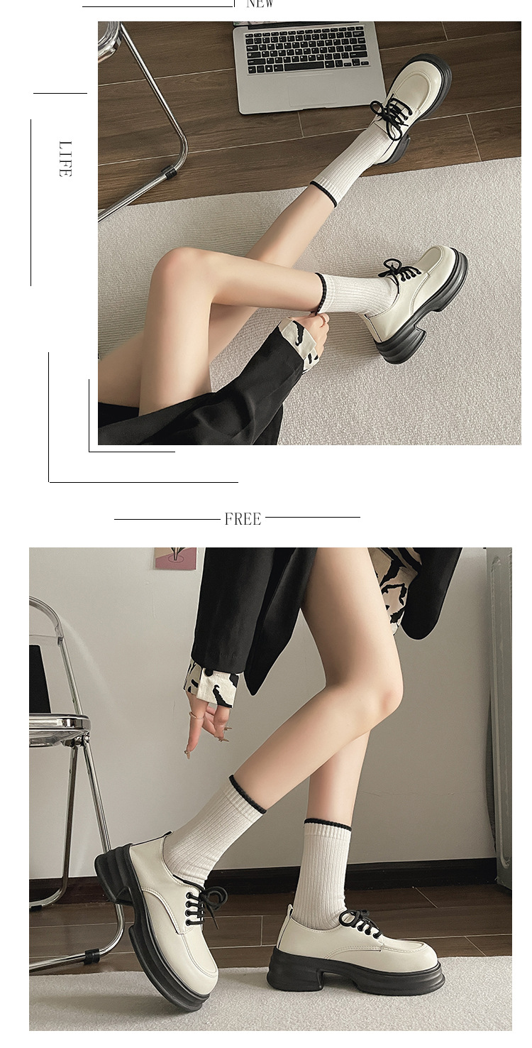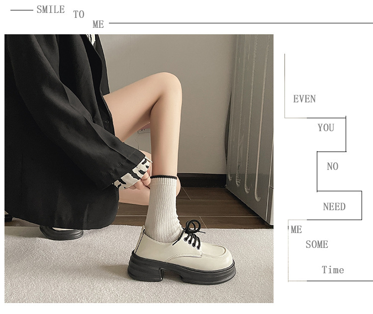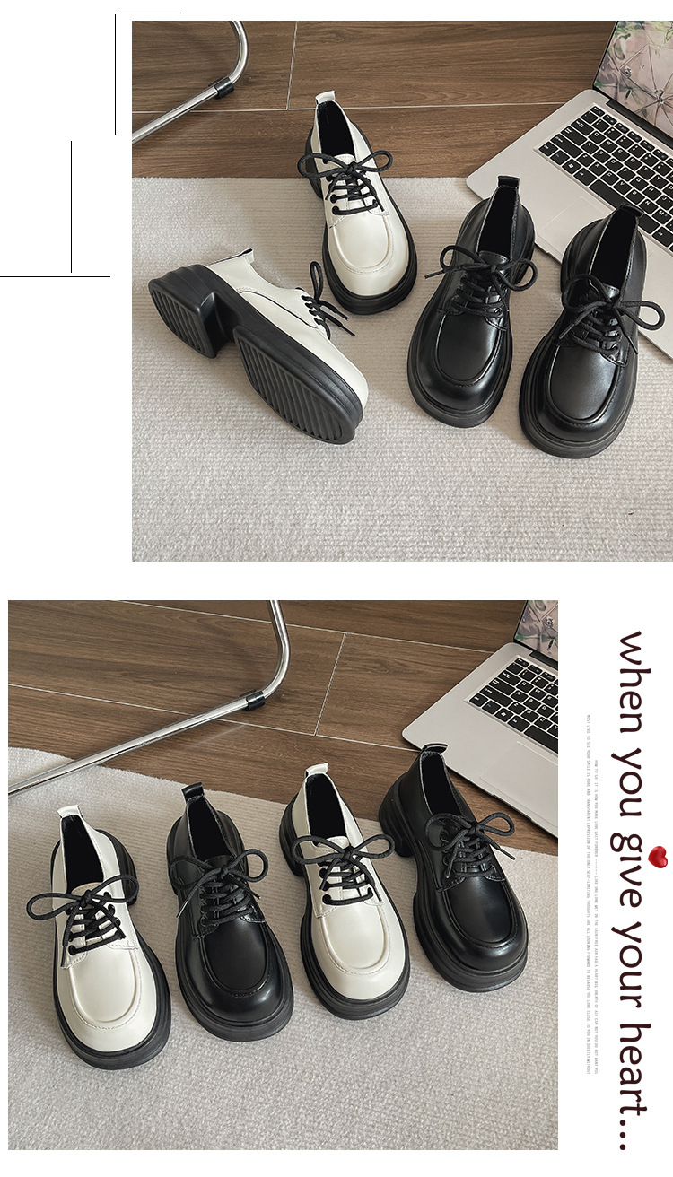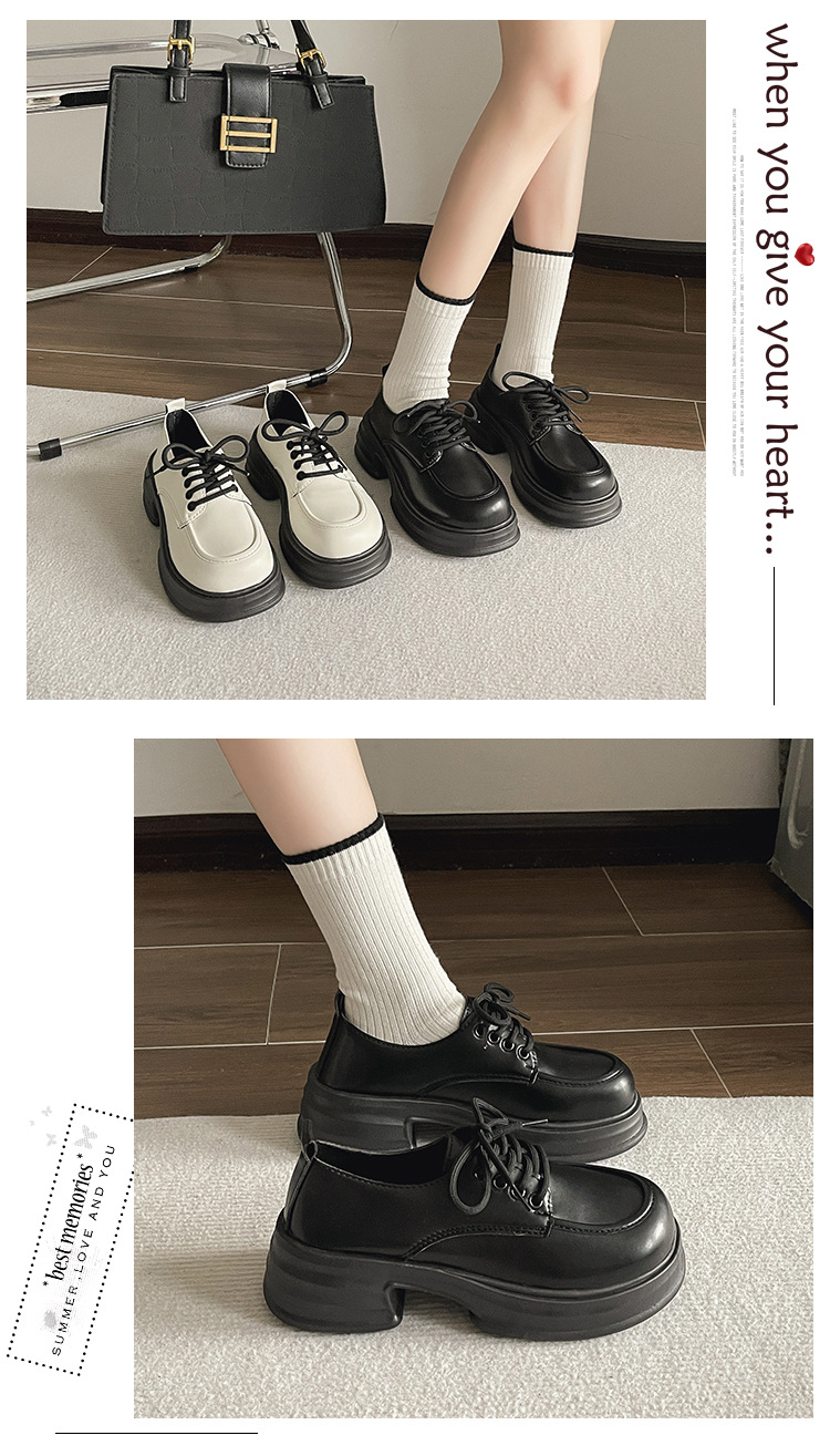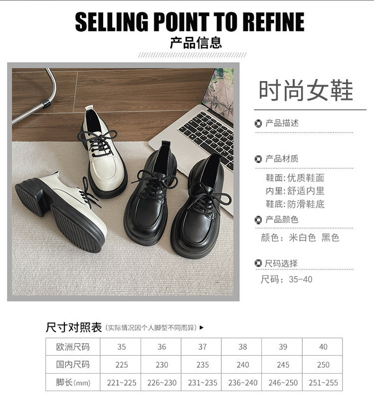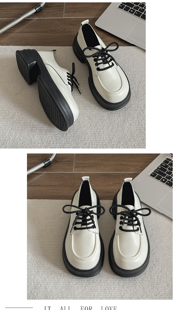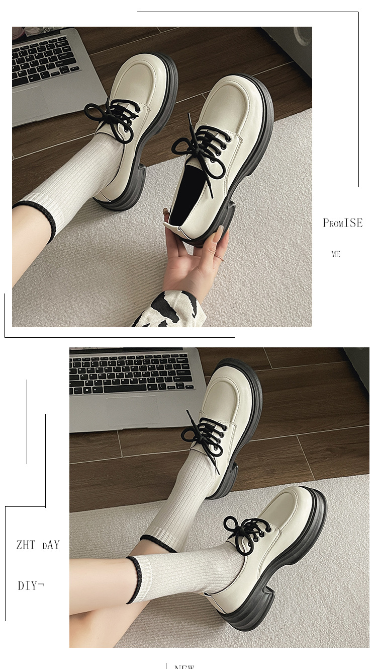 작은 가죽 신발 여성 영국 스타일 2023 새로운 봄과 가을 올 매치 머핀 두꺼운 밑창 일본 학생 레이스 업 빈티지 싱글 레이어 신발스토어 가기