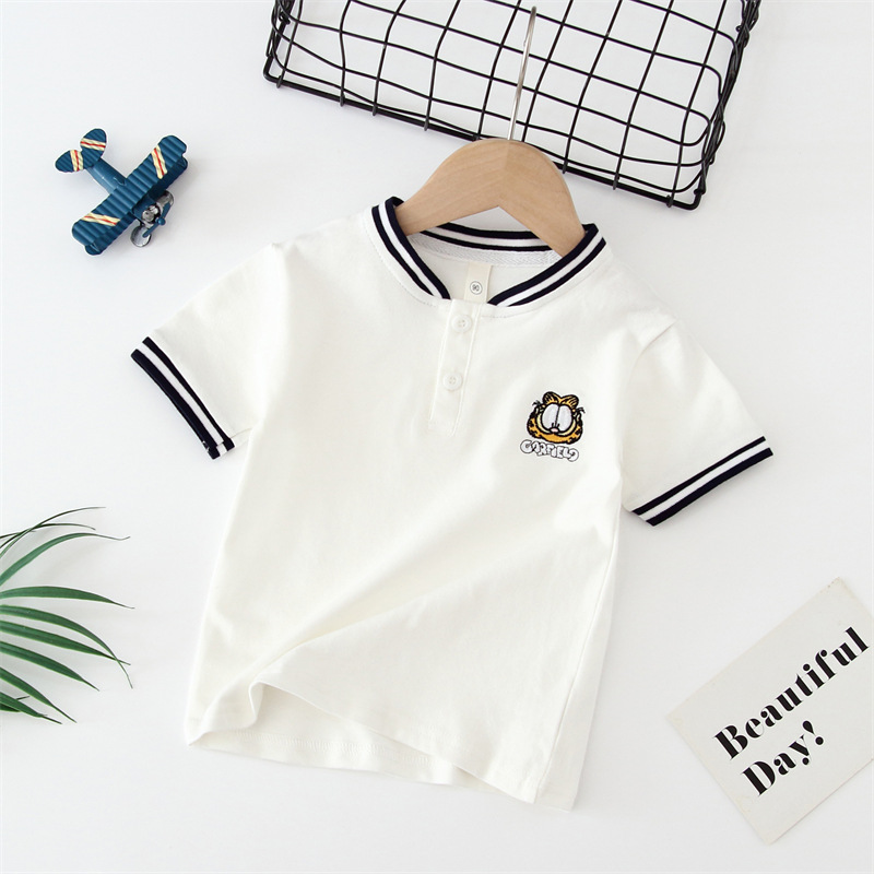 어린이 티셔츠 2024 여름 새 소년 폴로 셔츠 반팔 귀여운 고양이 옷깃 티셔츠