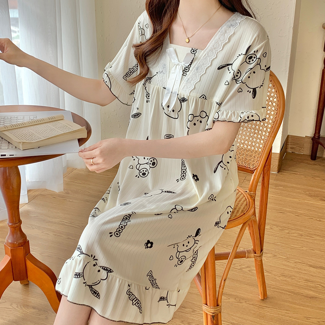 국경 간 잠옷 여성 반팔 여름 중장 레이스 공주 스타일 한국식 달콤한 겉옷 잠옷 홈웨어스토어 가기