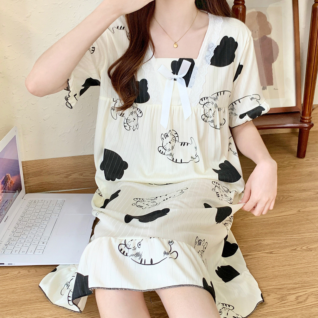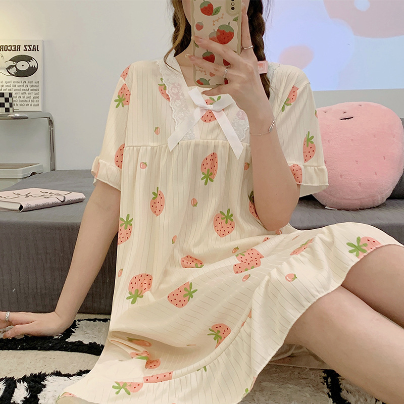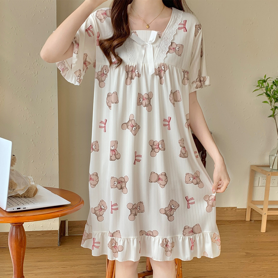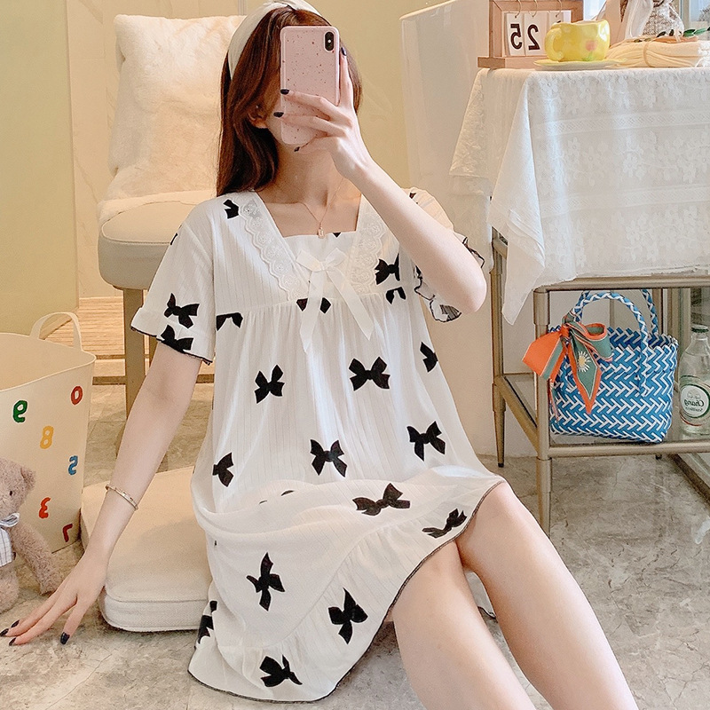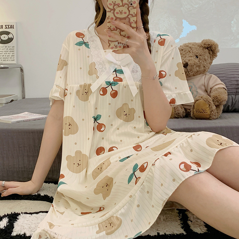 국경 간 잠옷 여성 반팔 여름 중장 레이스 공주 스타일 한국식 달콤한 겉옷 잠옷 홈웨어