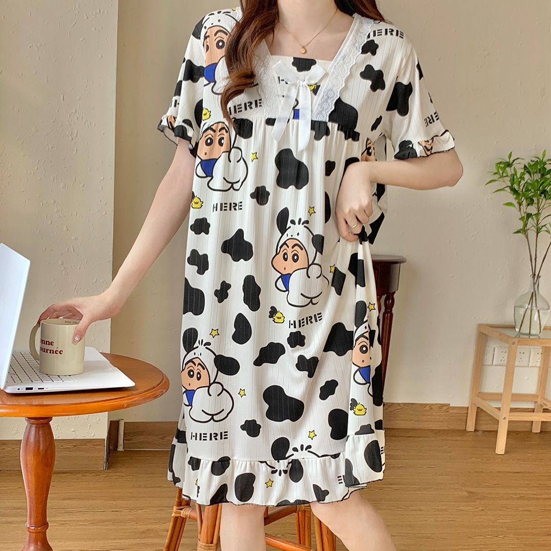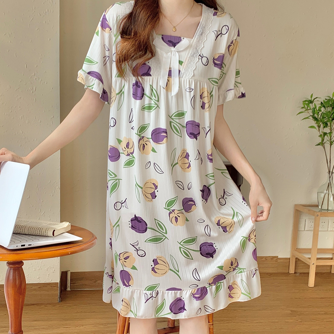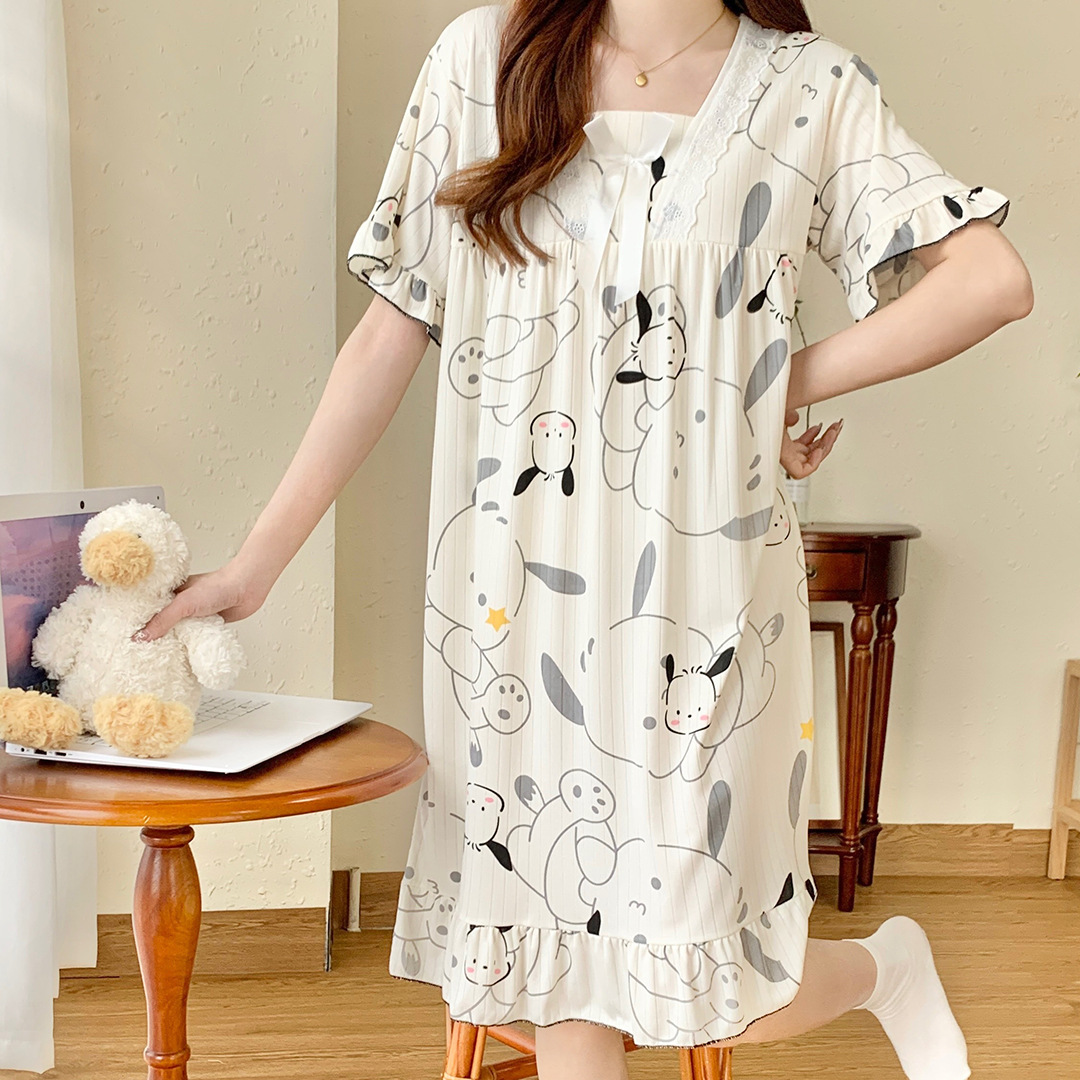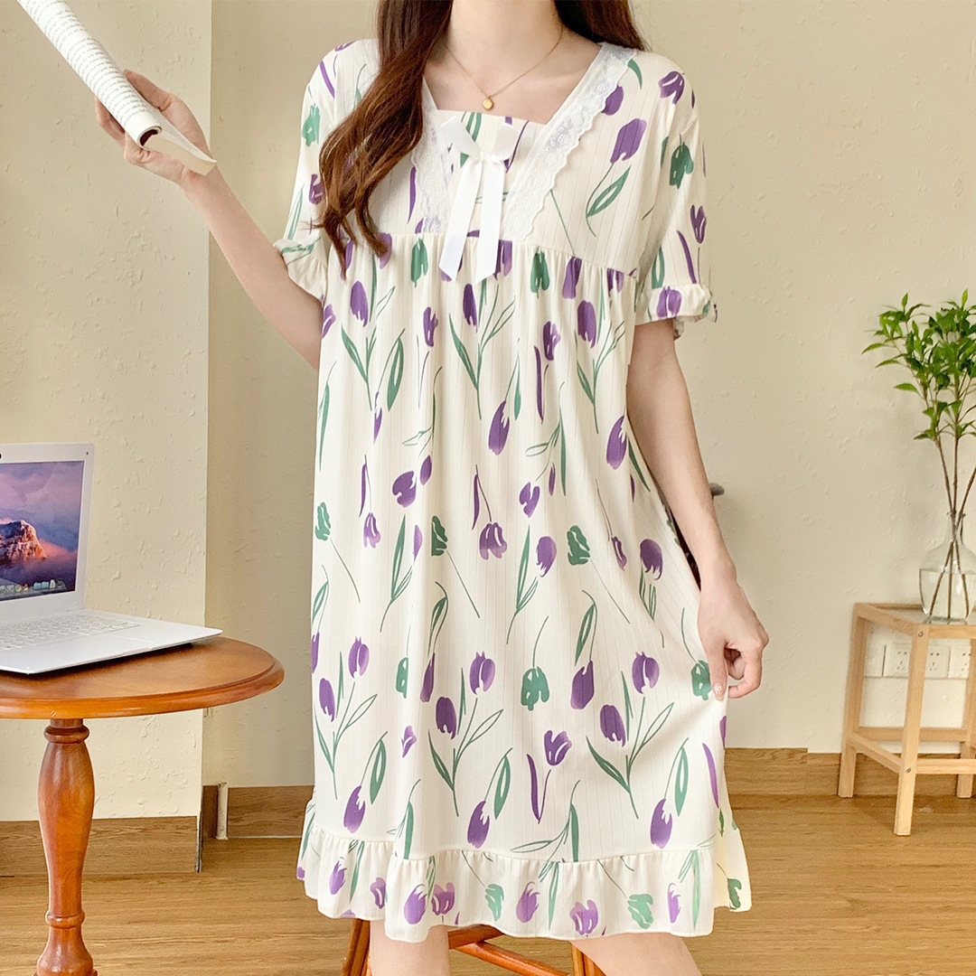 국경 간 잠옷 여성 반팔 여름 중장 레이스 공주 스타일 한국식 달콤한 겉옷 잠옷 홈웨어