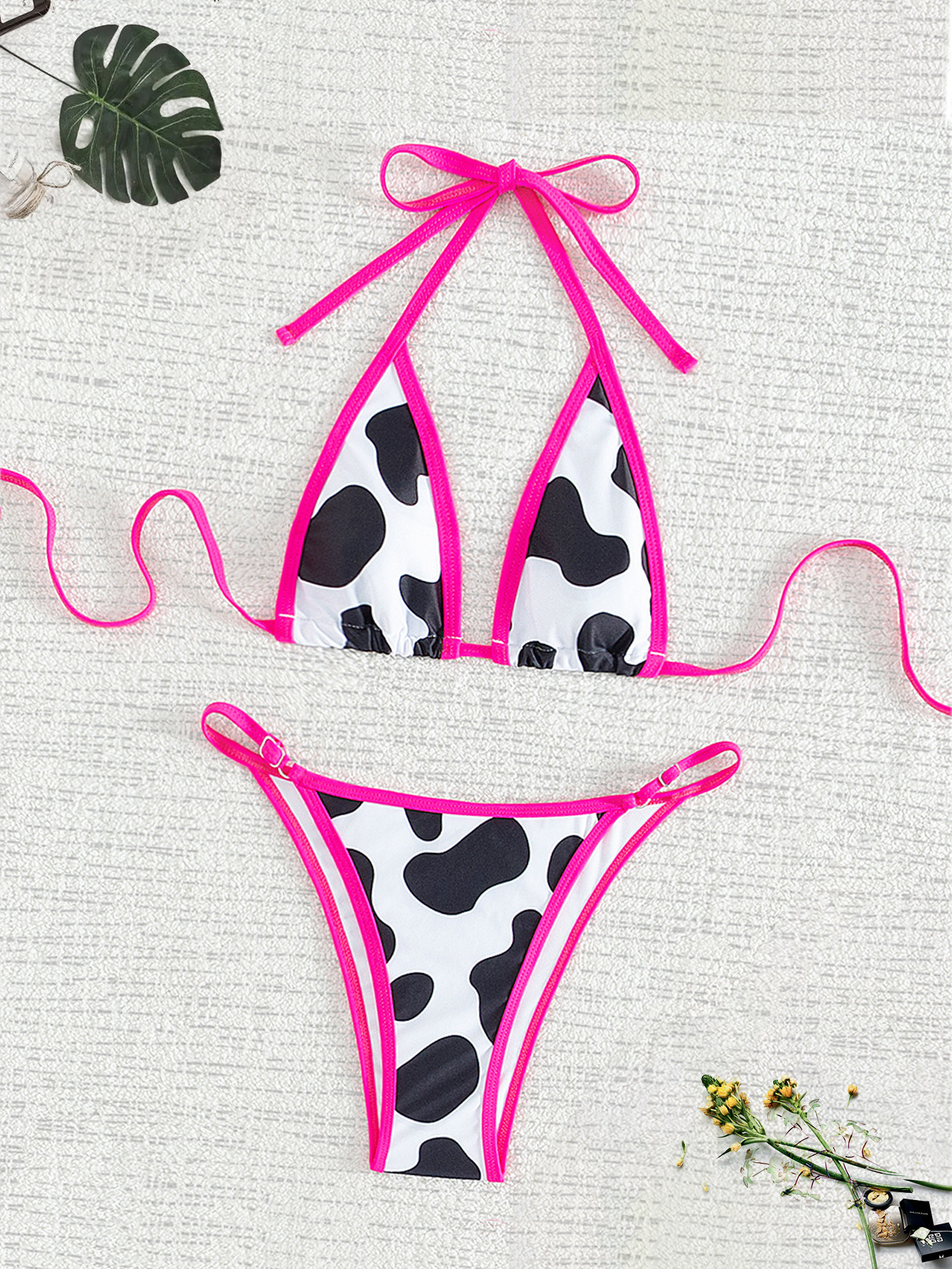 2024 국경 간 새로운 도매 유럽과 미국 스타일 분할 여성 수영복 고삐 레이스 업 흑백 섹시한 백리스 비키니스토어 가기