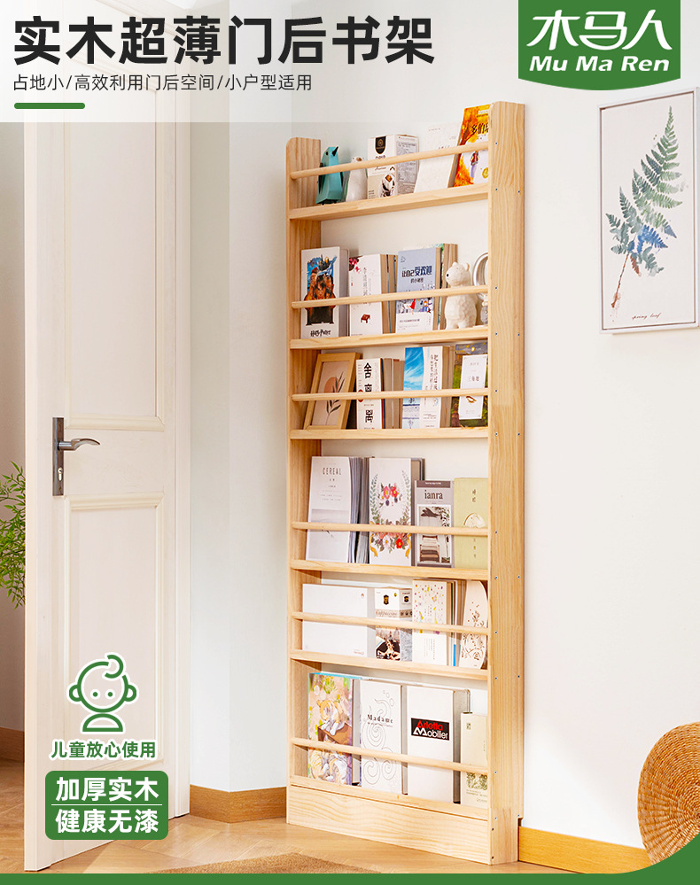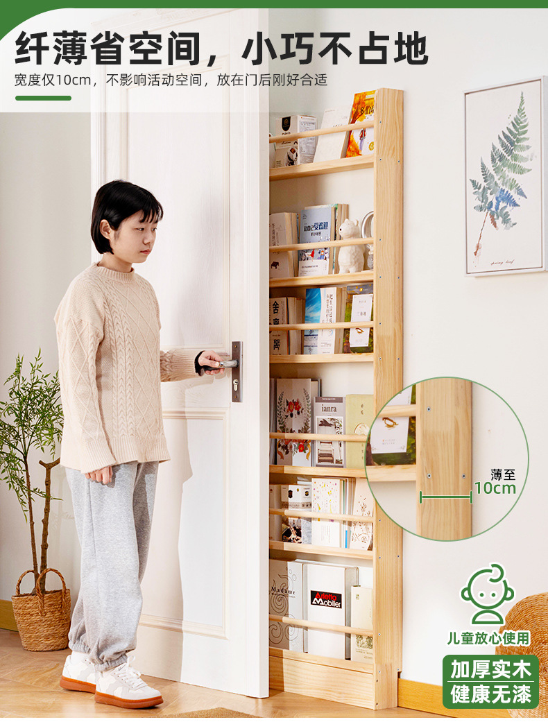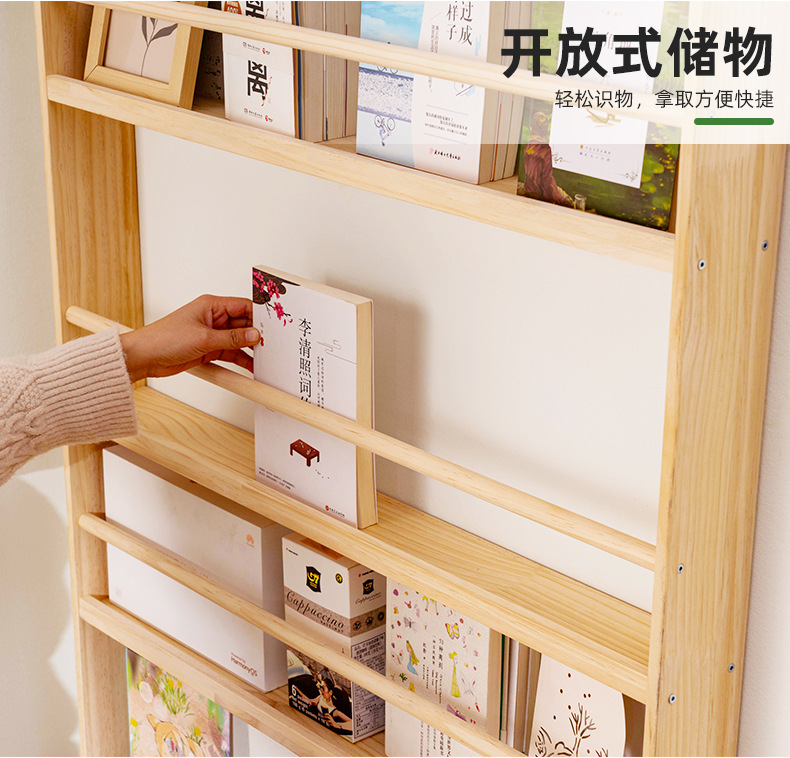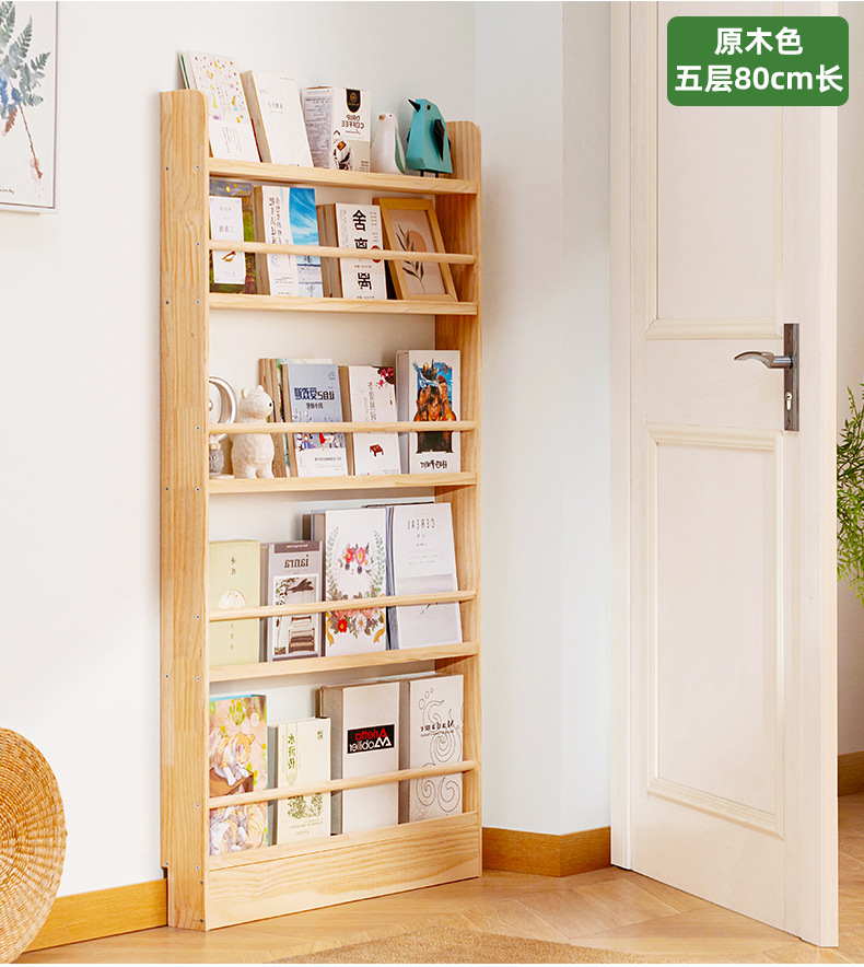 간단한 원목 책장, 벽에 붙이는 가정용 어린이 책장, 그림책 선반, 거실 현관 뒤 수납 선반