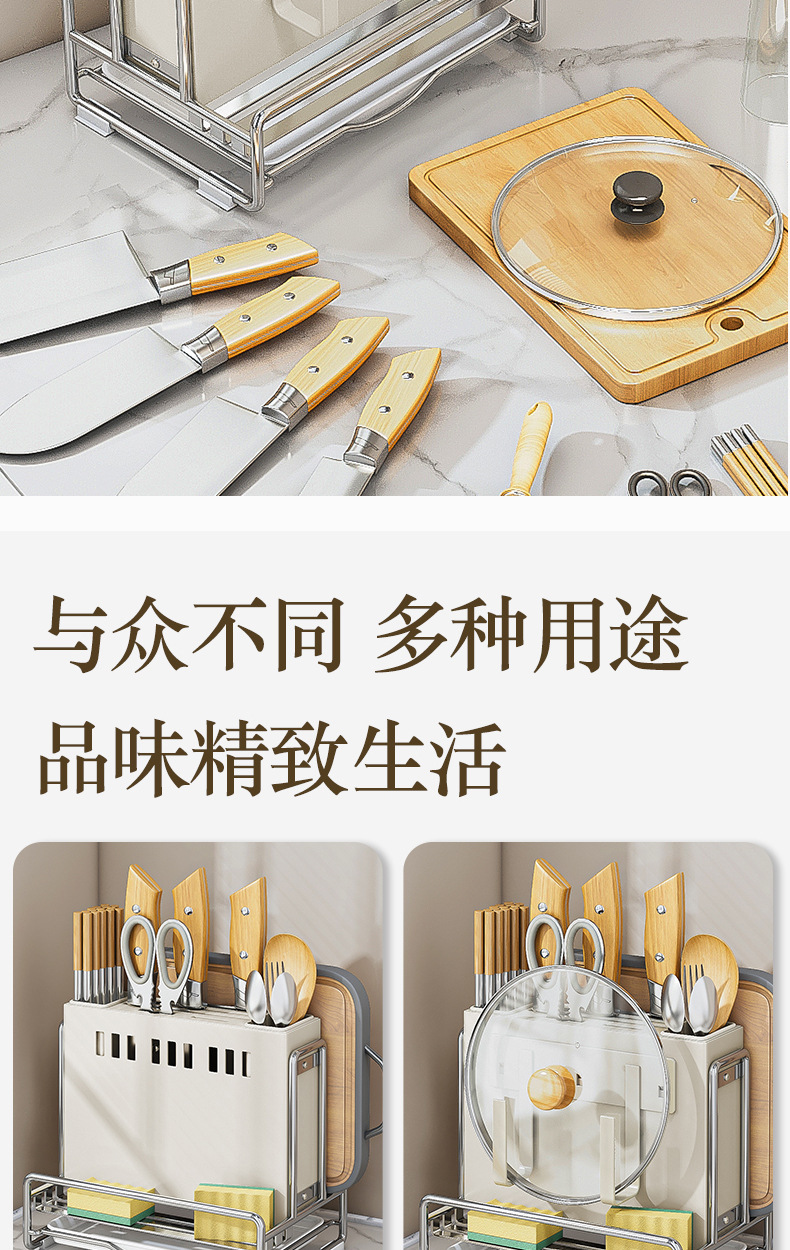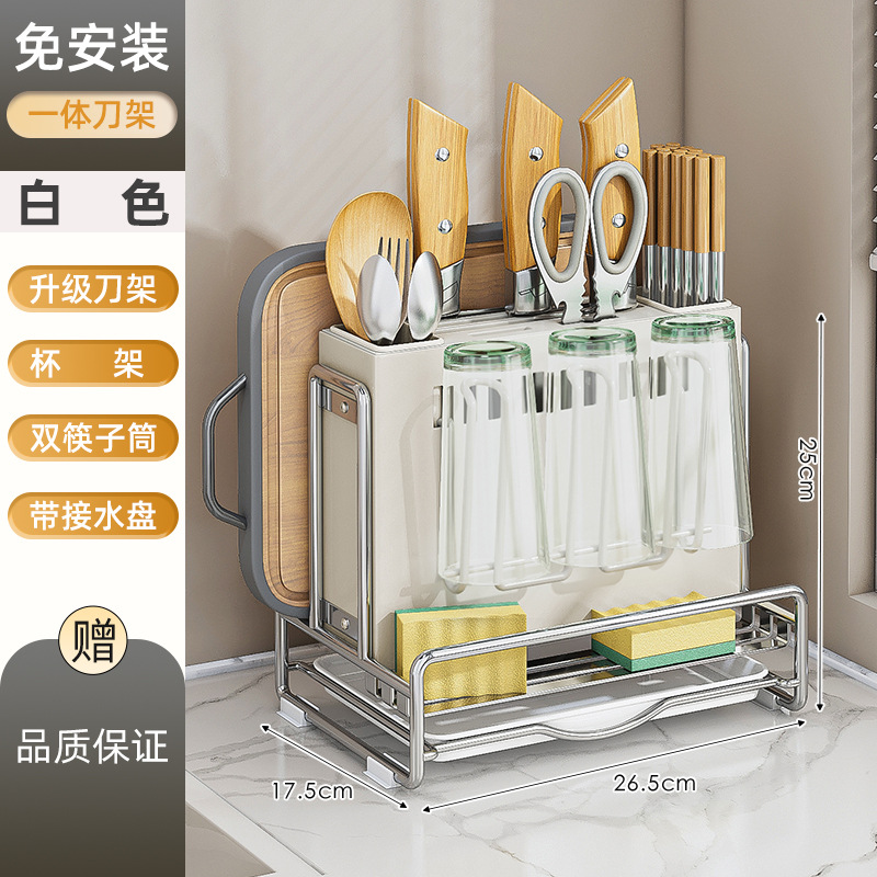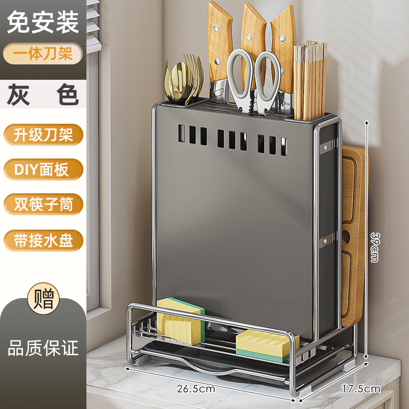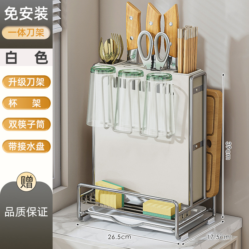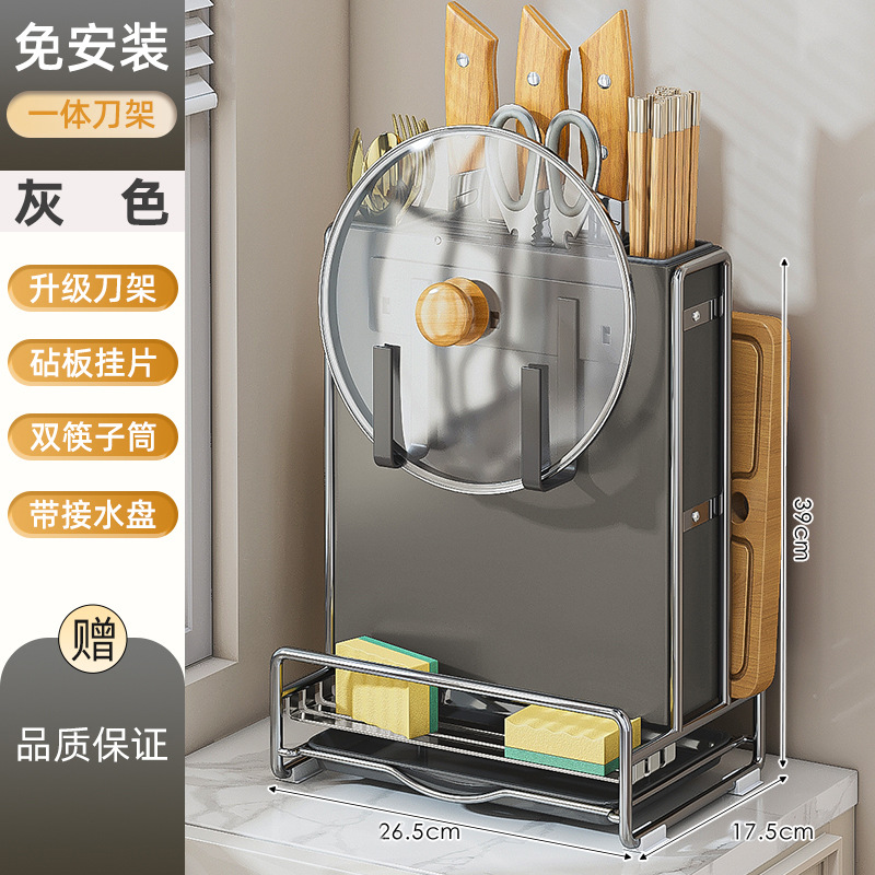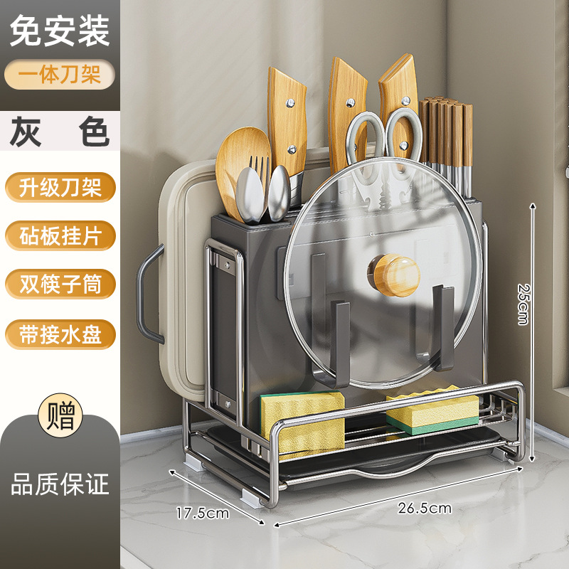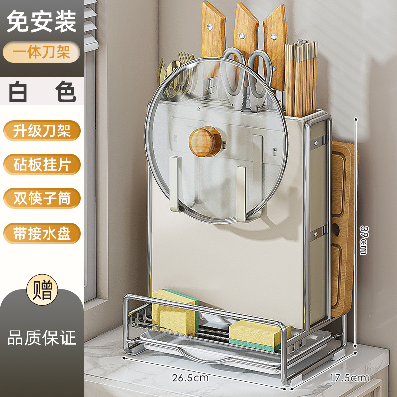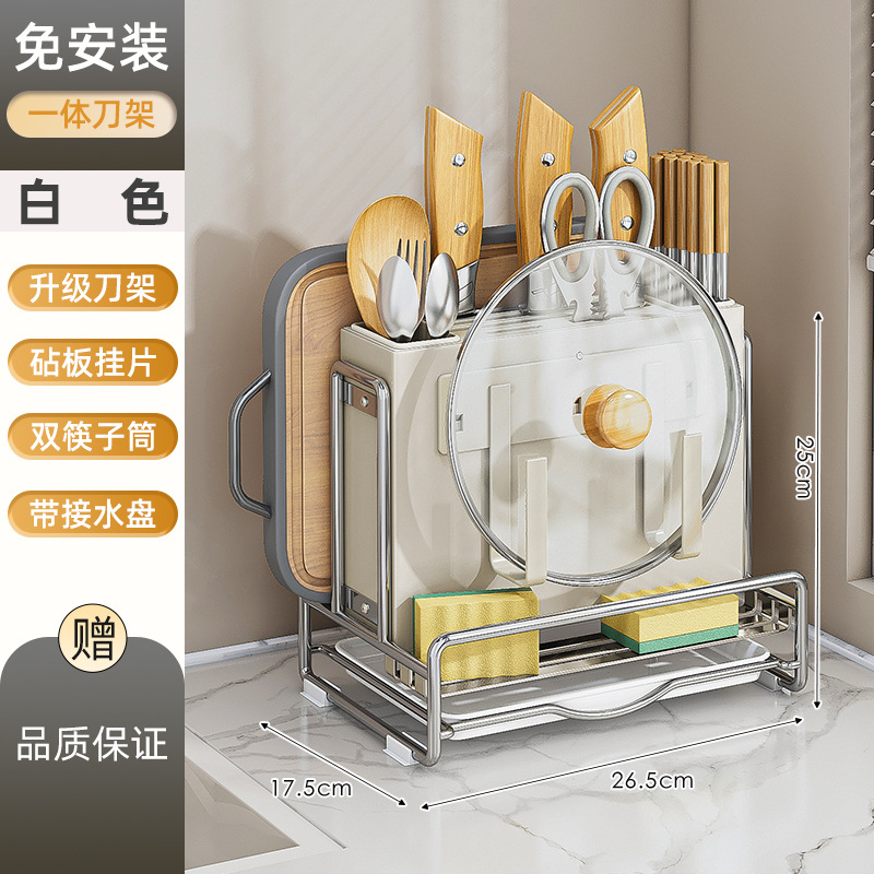 가벼운 고급 칼 홀더 젓가락 튜브 보관 랙 스테인레스 스틸 주방 보관 랙 다기능 캐비닛 테이블 상단 냄비 뚜껑 배수 랙스토어 가기