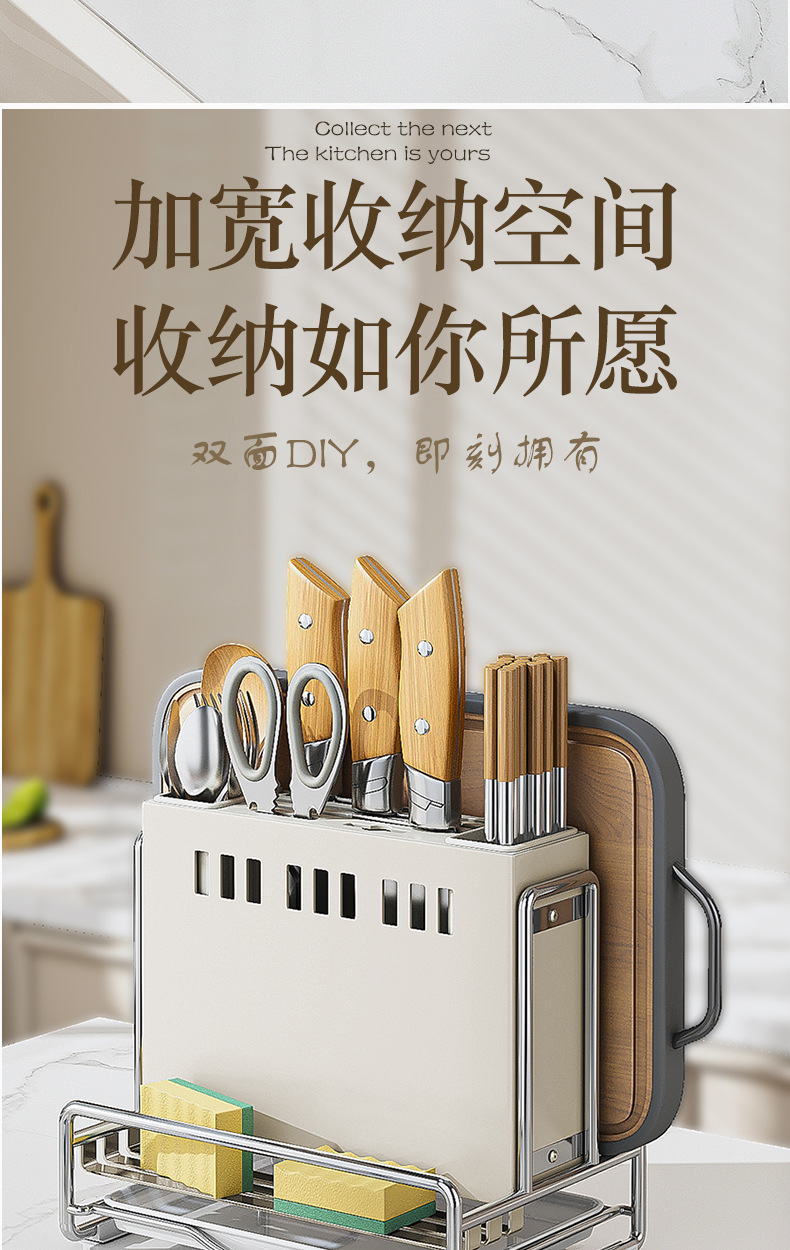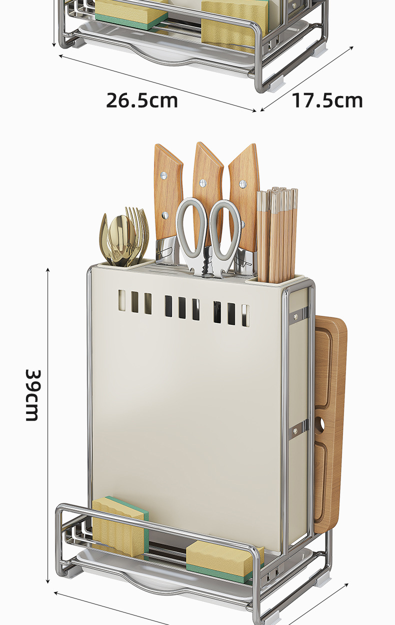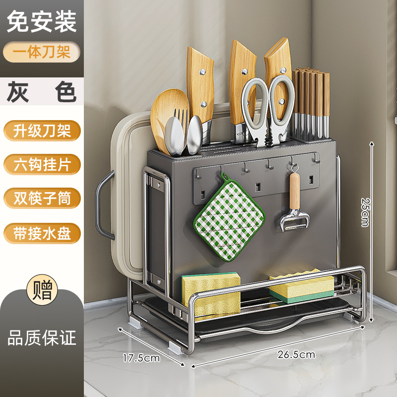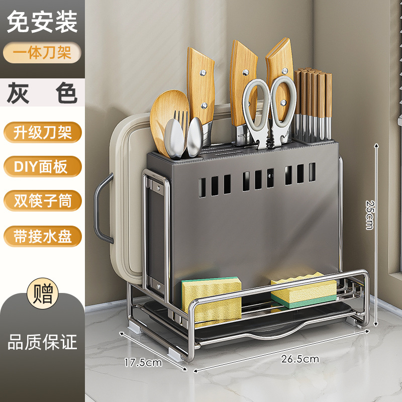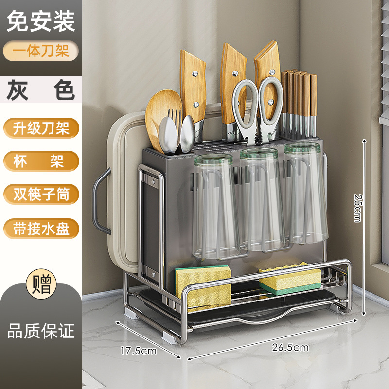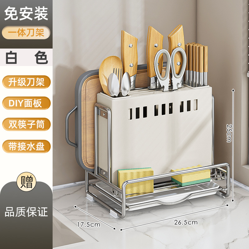 가벼운 고급 칼 홀더 젓가락 튜브 보관 랙 스테인레스 스틸 주방 보관 랙 다기능 캐비닛 테이블 상단 냄비 뚜껑 배수 랙스토어 가기
