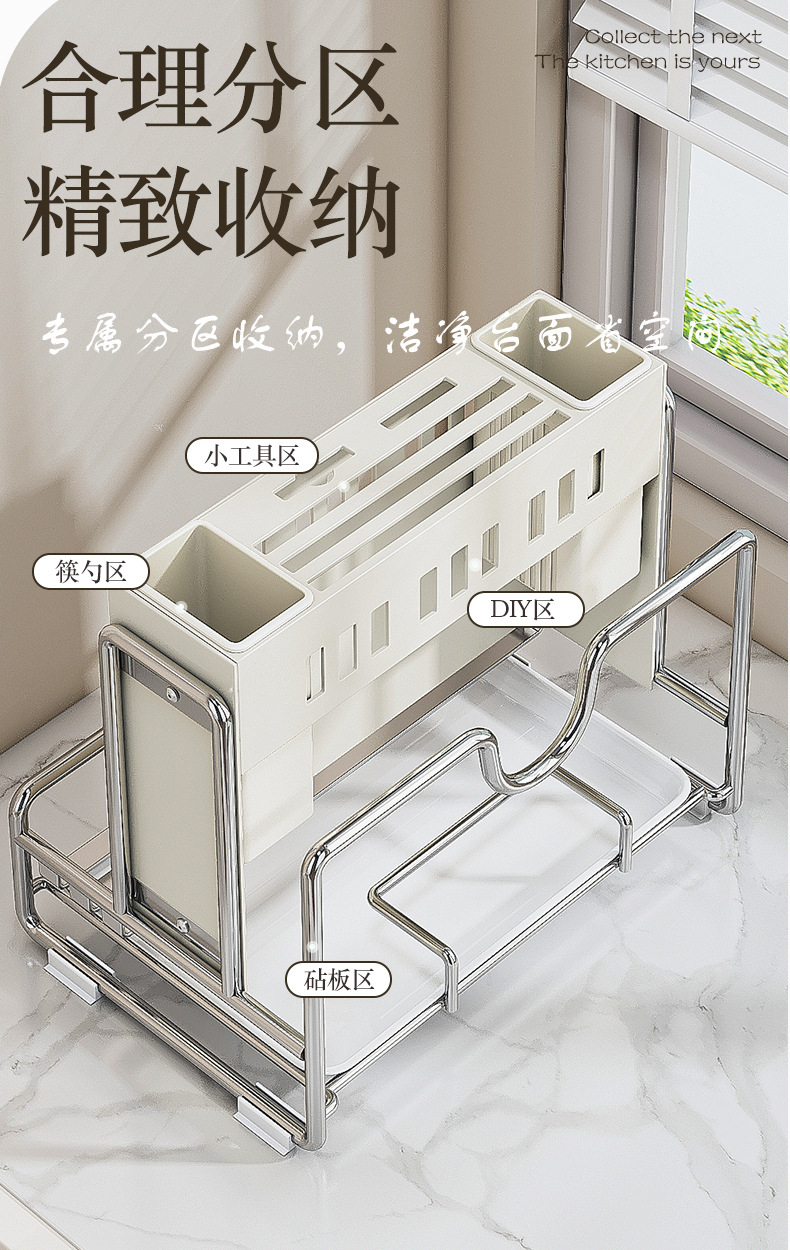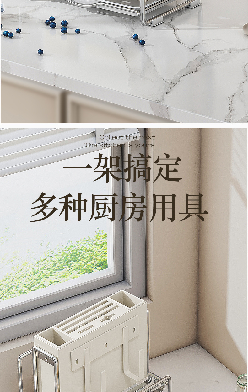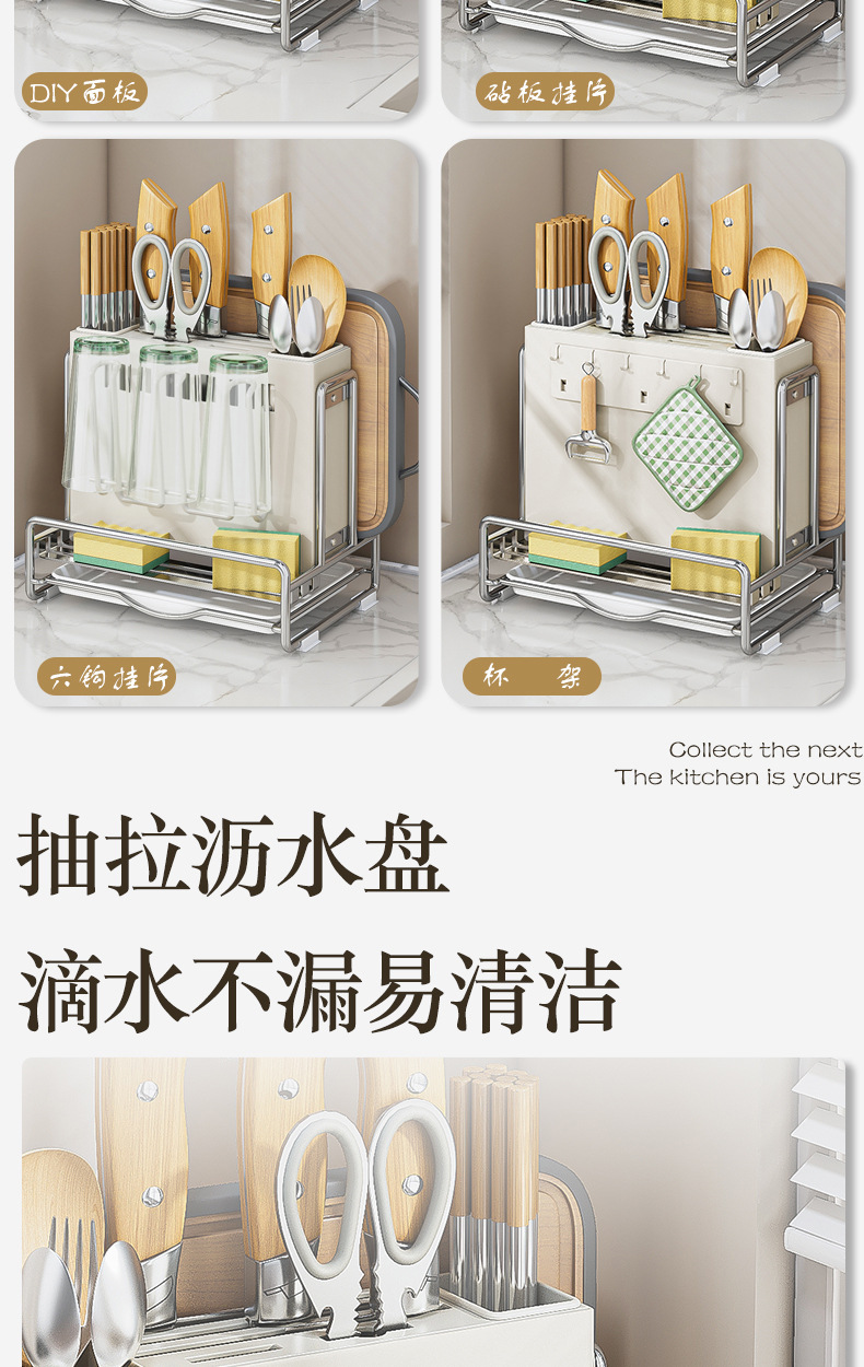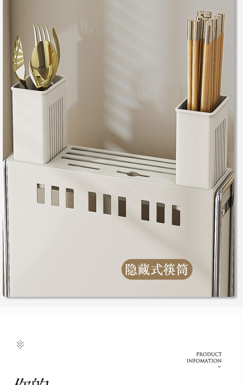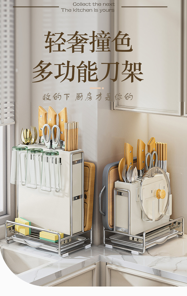 가벼운 고급 칼 홀더 젓가락 튜브 보관 랙 스테인레스 스틸 주방 보관 랙 다기능 캐비닛 테이블 상단 냄비 뚜껑 배수 랙스토어 가기