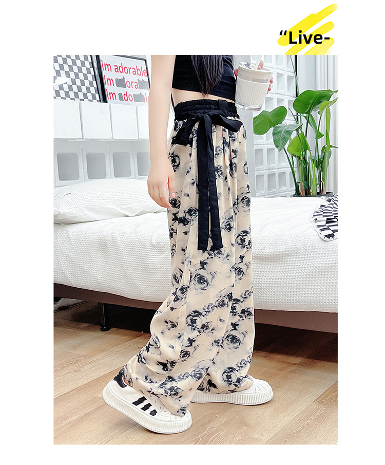 소녀 바지 여름 얇은 아이스 실크 그라디언트 모기 방지 바지 여름 유행 캐주얼 중형 및 대형 어린이 쉬폰 와이드 레그 바지스토어 가기