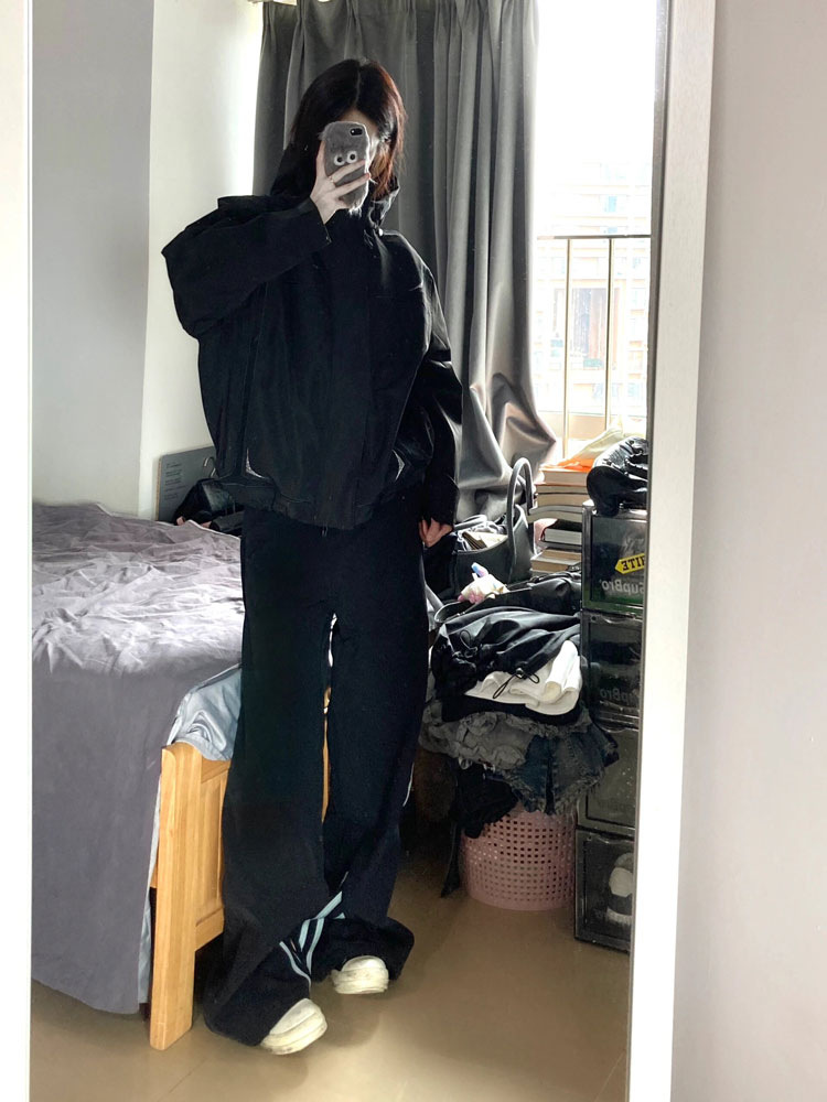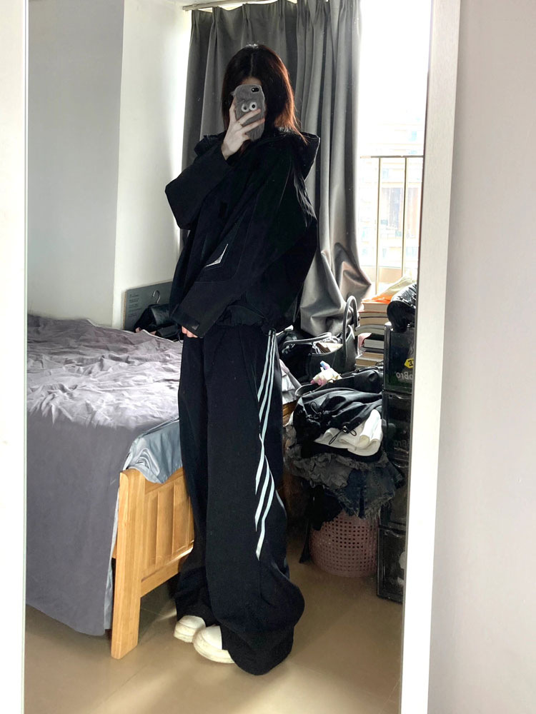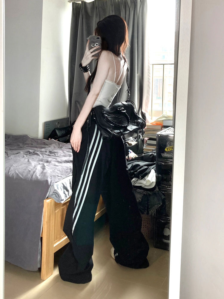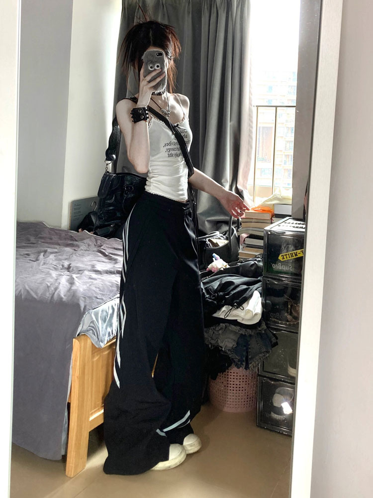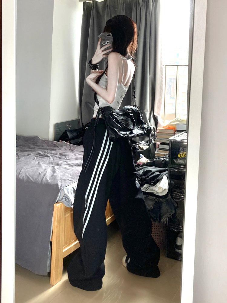 새로운 봄과 여름을 2024 여성을위한 미국 하이 스트리트 3 바 바지 느슨한 스트레이트 디자인 와이드 레그 팬츠스토어 가기