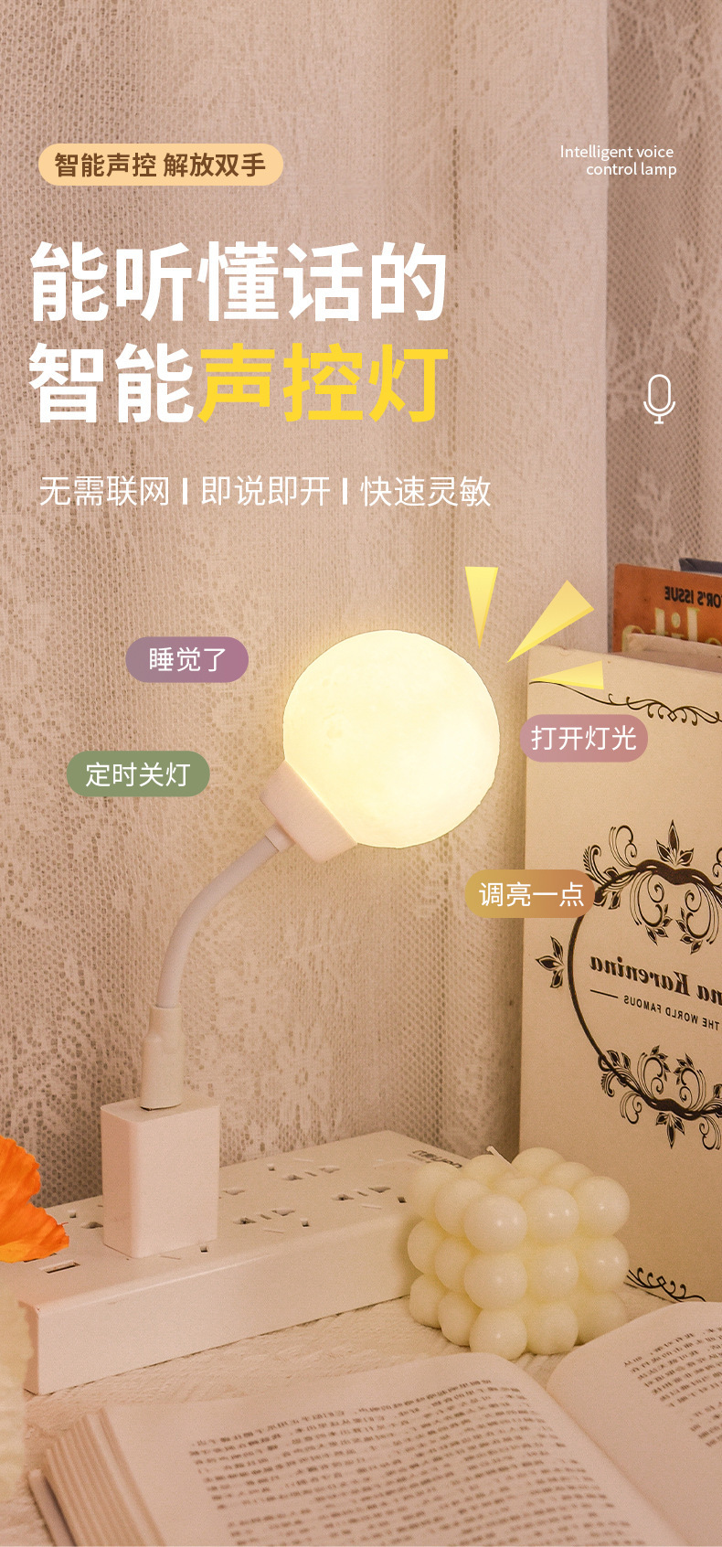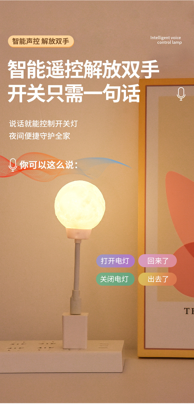 음성 빛 창조적 인 3D 달 직접 플러그 전기 음성 제어 야간 조명 침실 거실 잠자는 3 색 디밍 부드러운 조명 침대 조명
