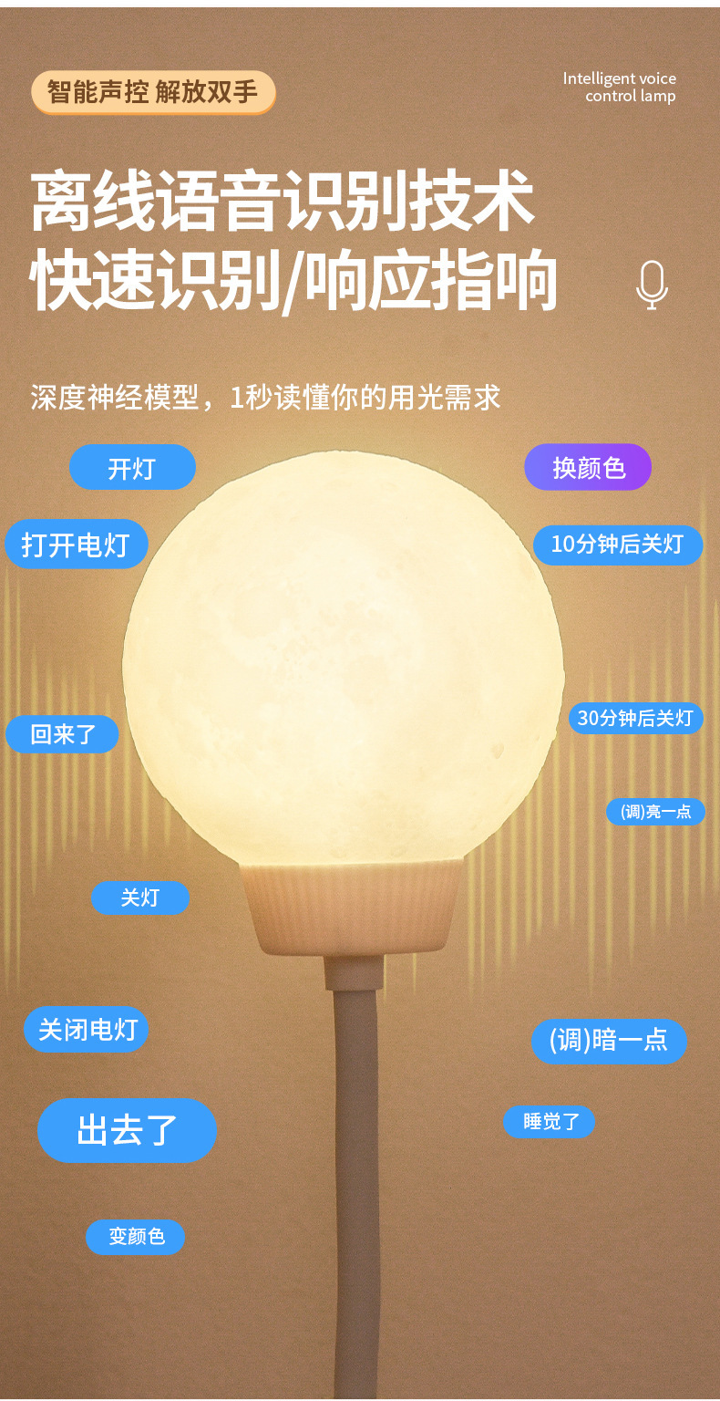 • 타이밍 기능이있는 음성 달 빛 (3 색 변환)