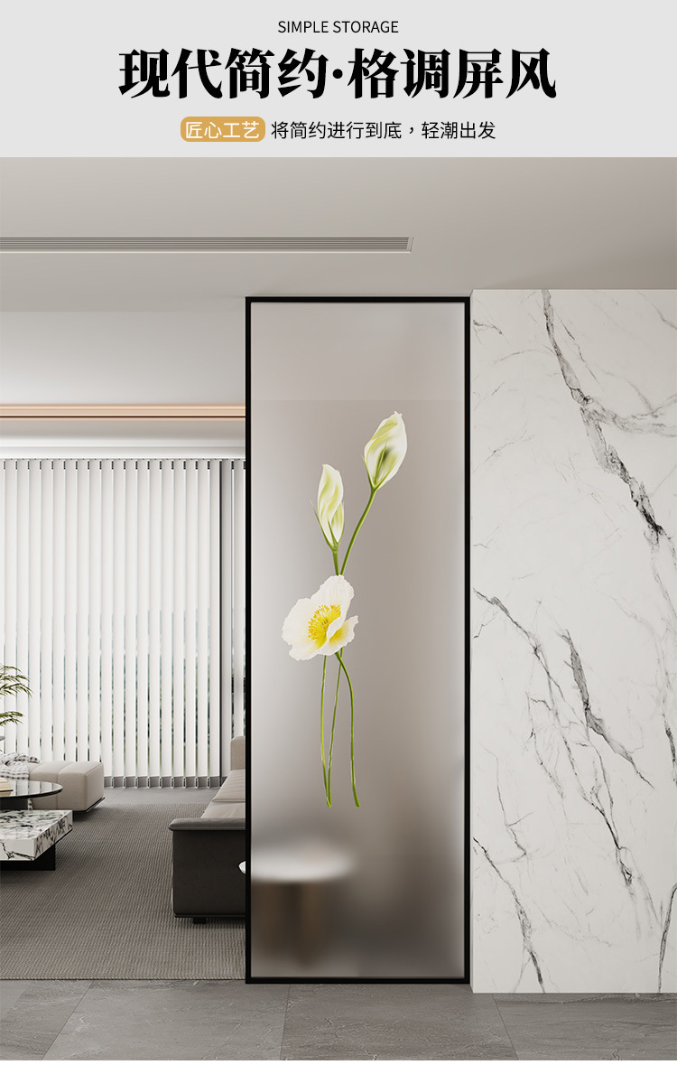 艺术玻璃屏风隔断客厅入户玄关钢化玻璃磨砂卫生间超白玻水纹油画
