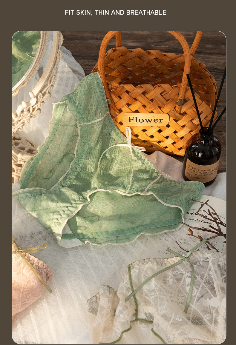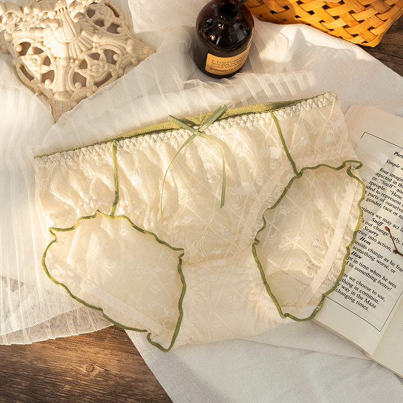 레이스 속옷 여성의 섹시한 순수한면 항균 가랑이 얇은 순수 소녀 아이스 실크 브리프 원활한 속옷 여성의 여름