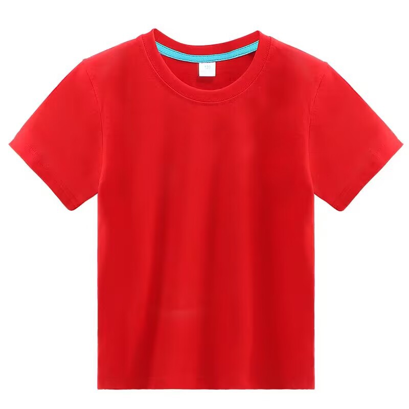 어린이 티셔츠 유치원 큰 어린이 제조 업체 도매 빗질 코튼 단색 짧은 소매 클래스 의류 파티 인쇄스토어 가기