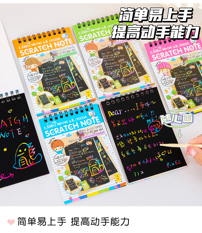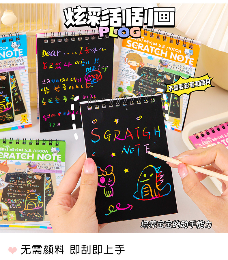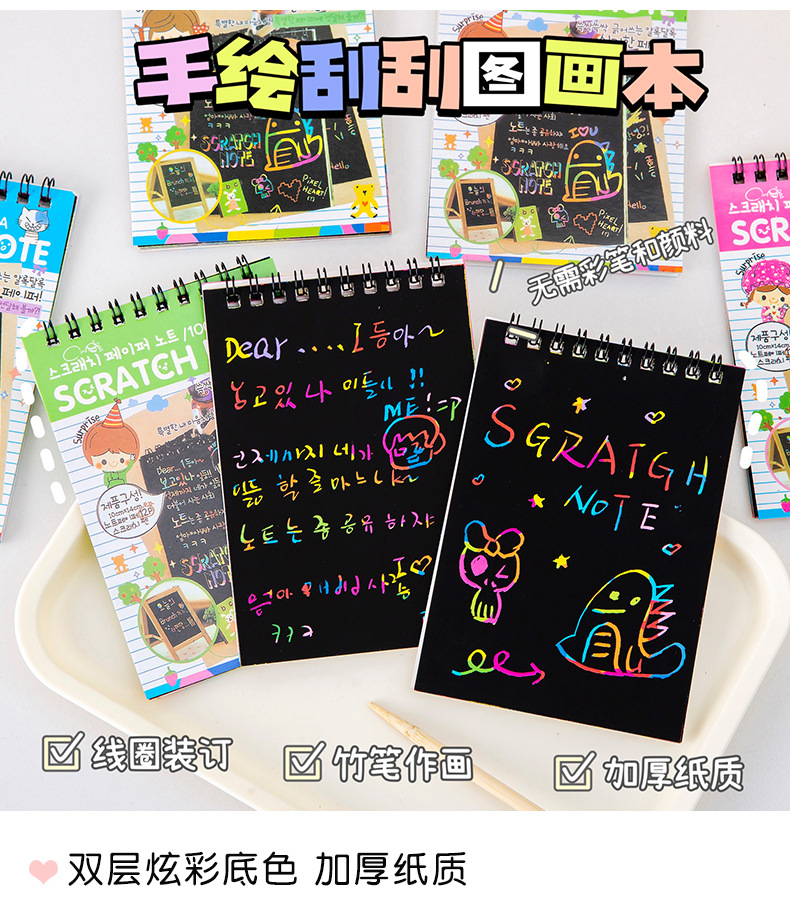 두꺼운 어린이 DIY 스크래치 페인팅 다채로운 스크래치 페인팅 책 유치원 환경 보호 교육 예술 코일 페인팅 북 도매스토어 가기