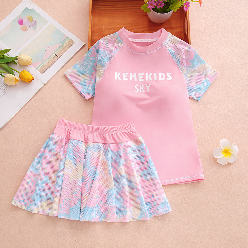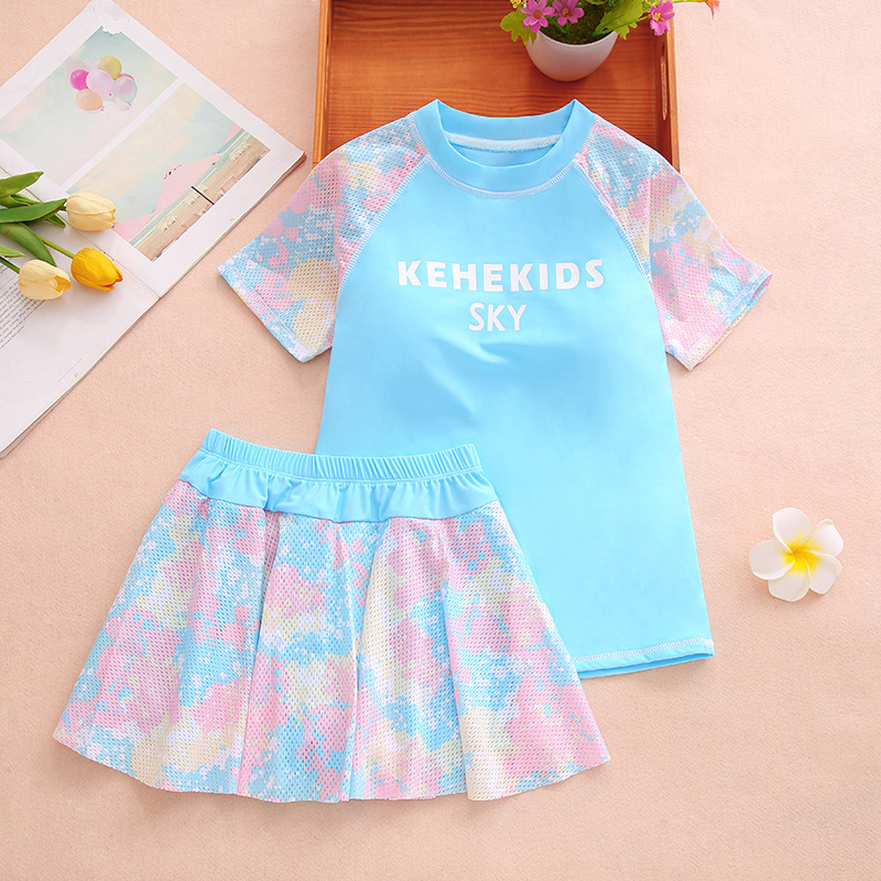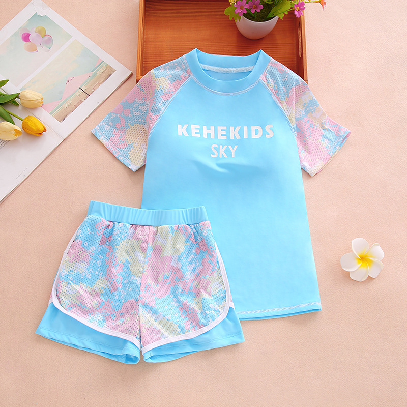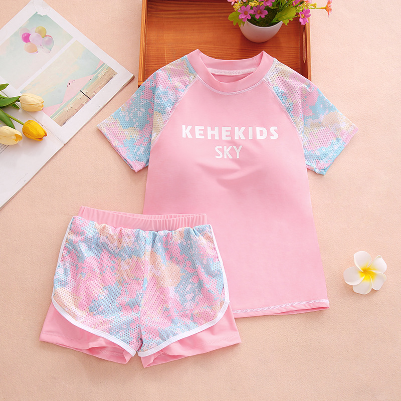 소녀 여름 새로운 패션 수영복 메쉬 위장 컬러 매칭 스포츠 분할 큰 어린이 수영복 어린이 도매 수영복스토어 가기