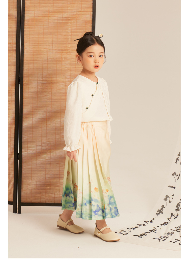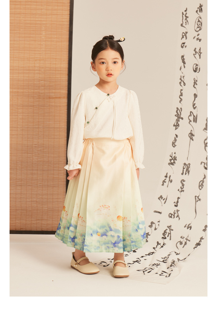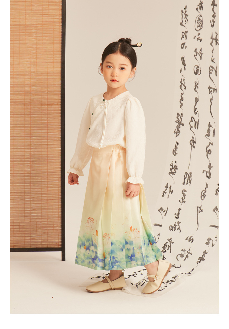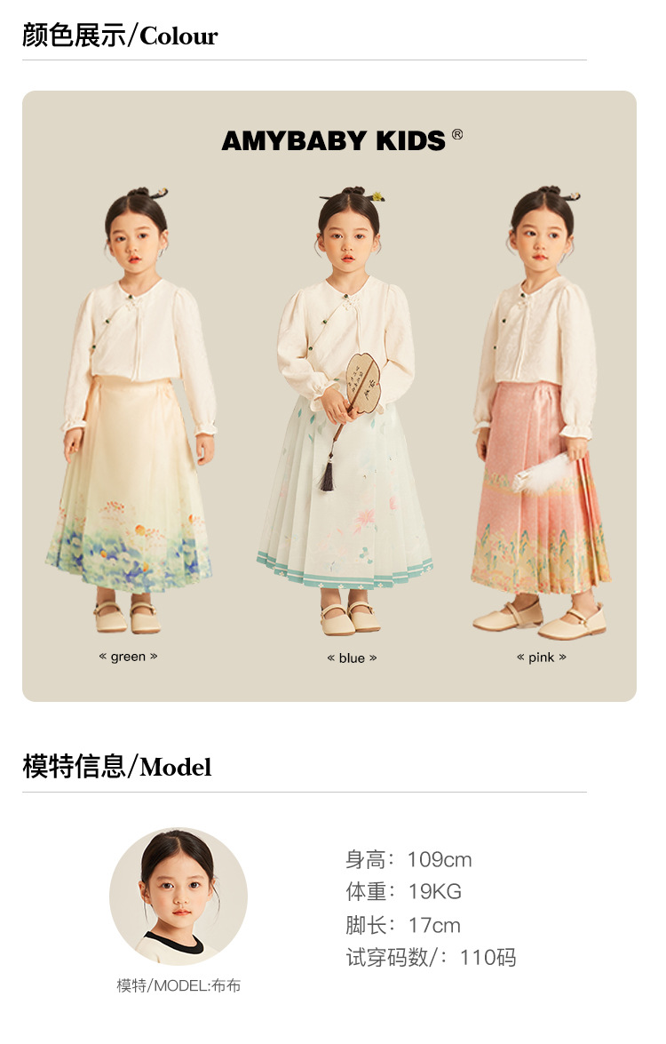 Amybaby 소녀의 말 얼굴 원피스 2024 새로운 어린이 봄과 가을 스타일 슈퍼 요정 우아한 새로운 중국 스타일 긴 원피스