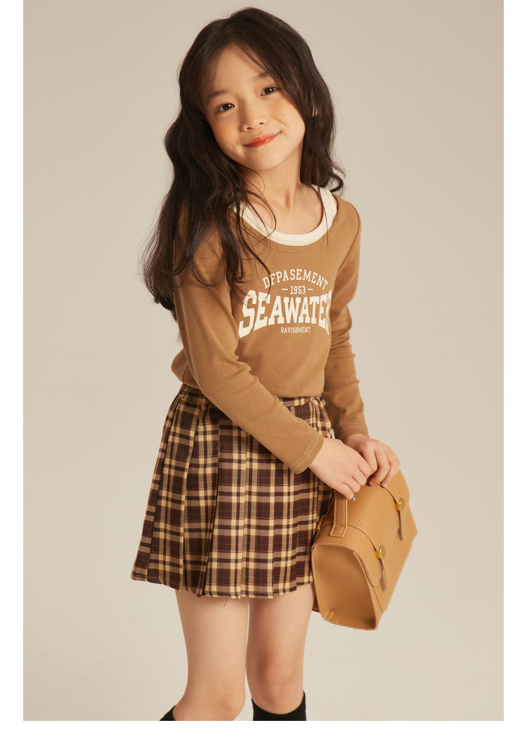 Amybaby 소녀의 주름 치마 2024 새로운 어린이 대학 스타일 클래식 간단한 캐주얼 격자 무늬 스커트스토어 가기