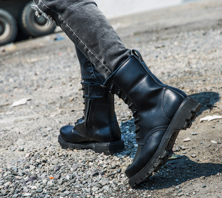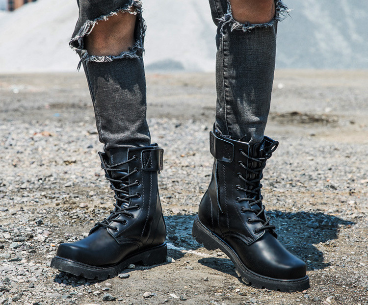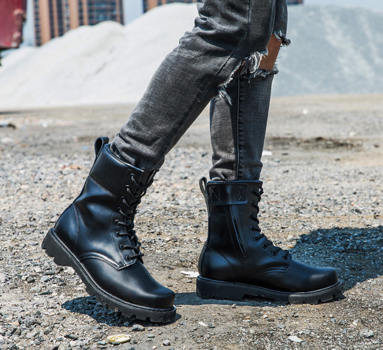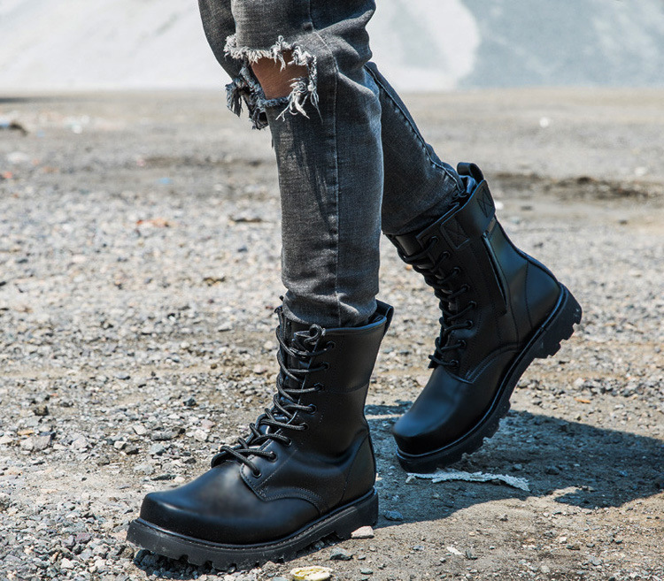 부츠 남성 가죽 부츠 야외 부츠 가을과 겨울 기모 따뜻한 하이 탑 울 전투 부츠 남성 보안 면화