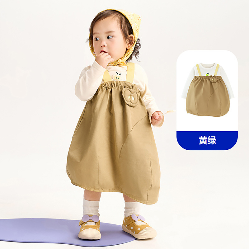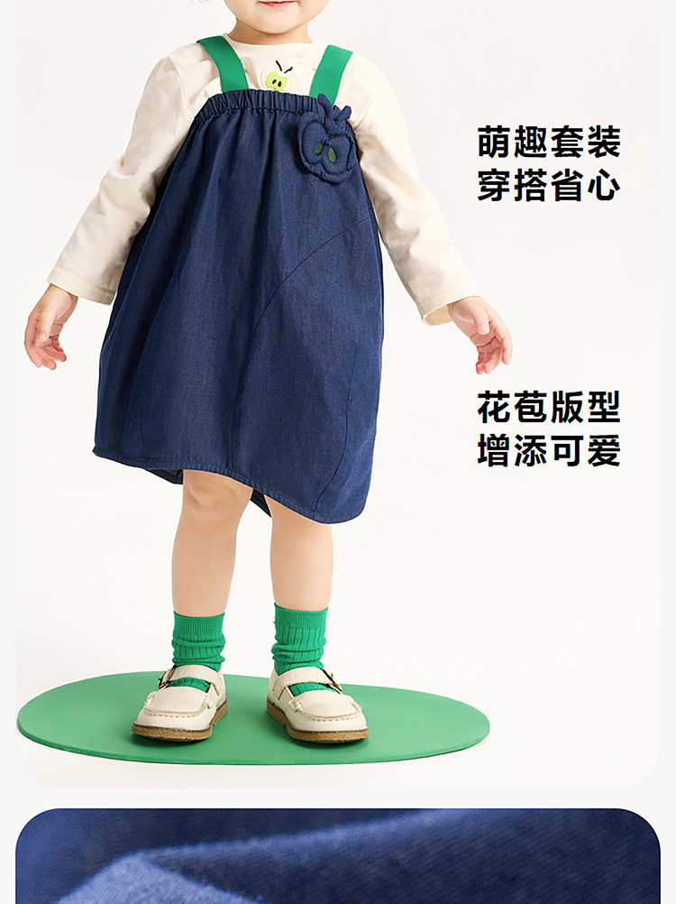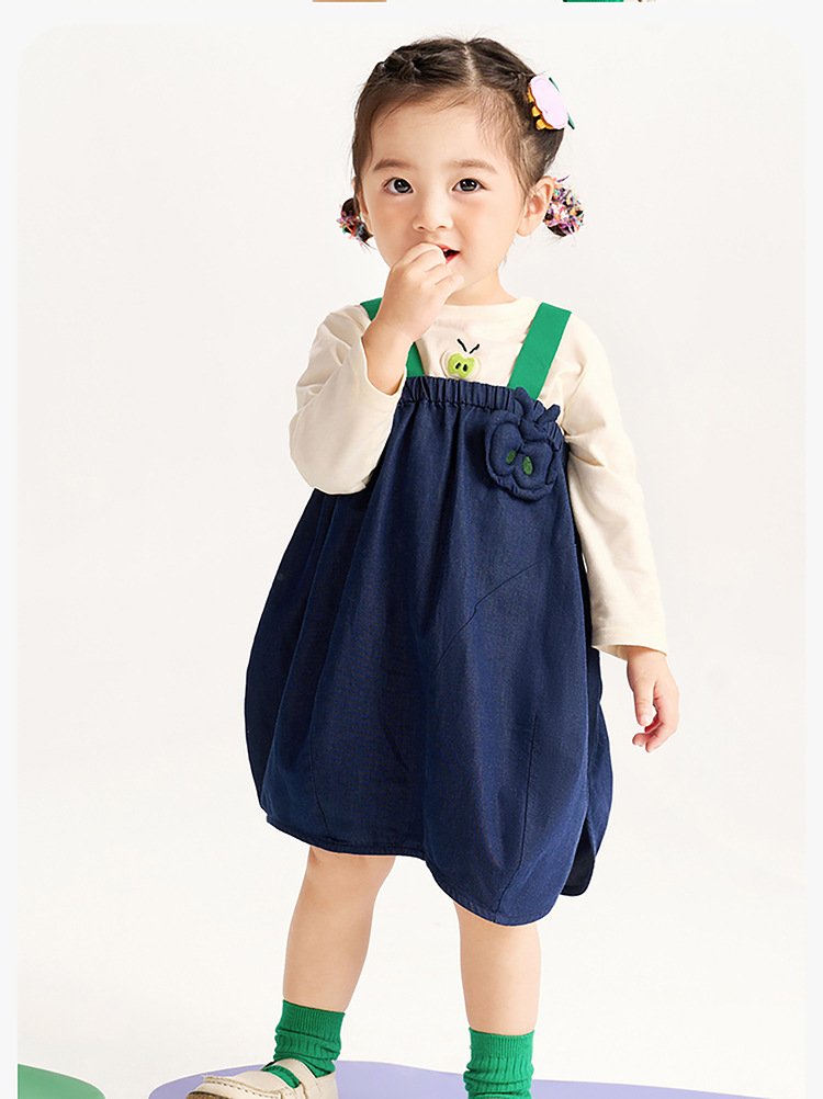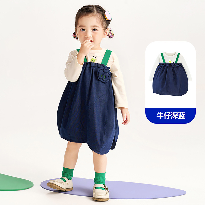 소녀 긴팔 원피스 세트 2024 봄과 가을 아기 피부 친화적 인 순면 패션 티셔츠 서스펜더 원피스 공주스토어 가기