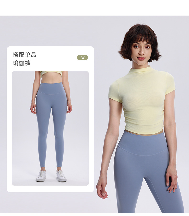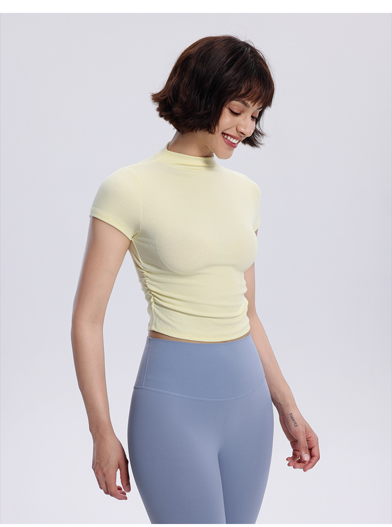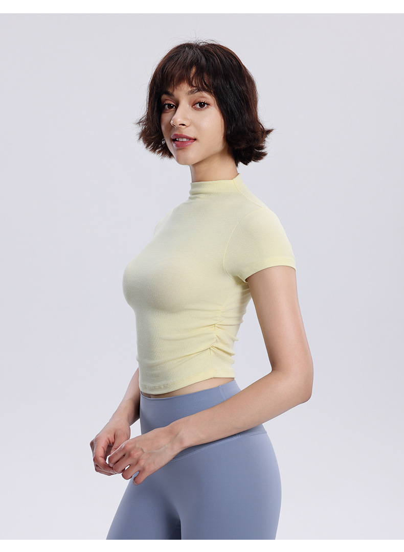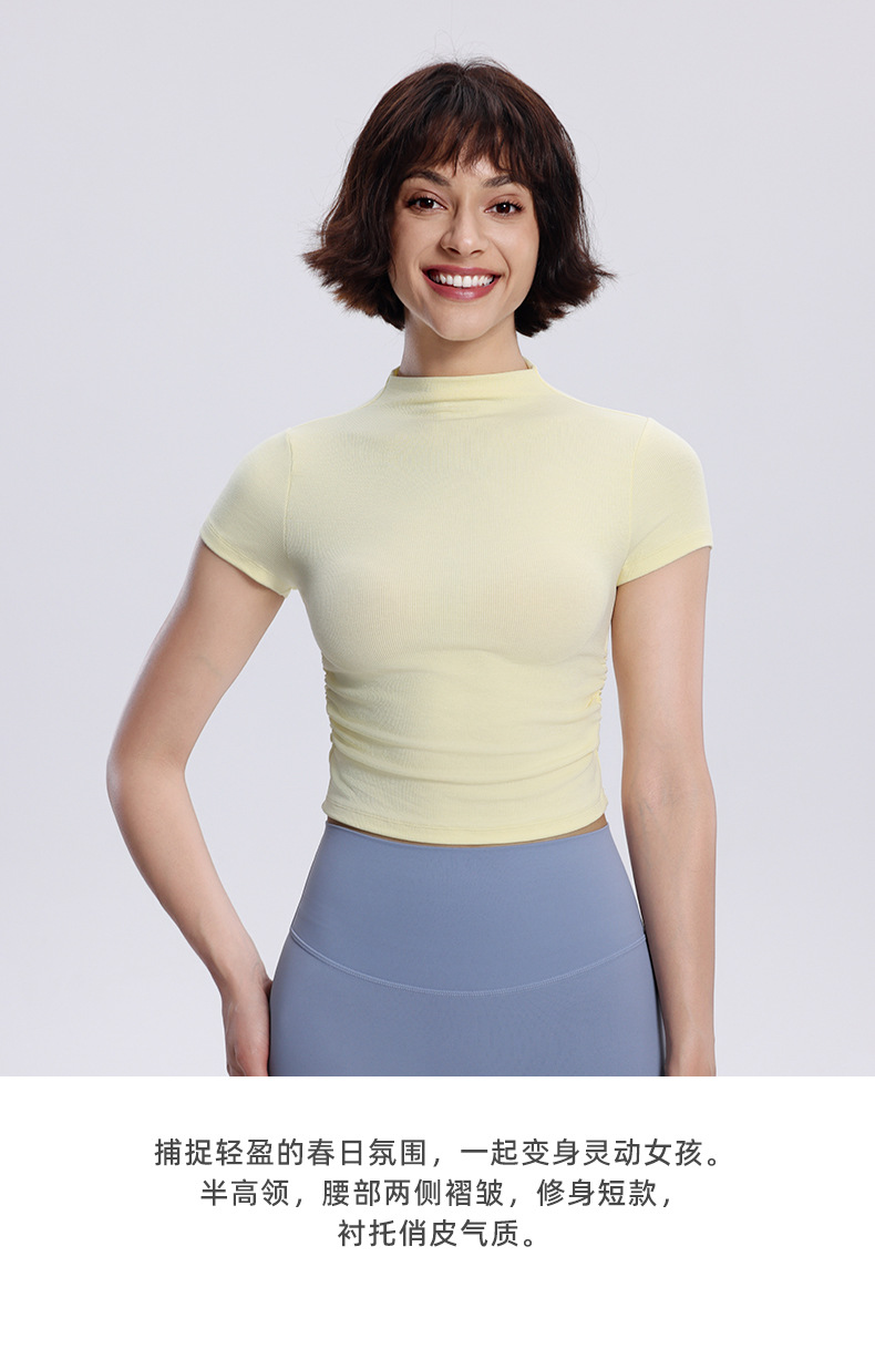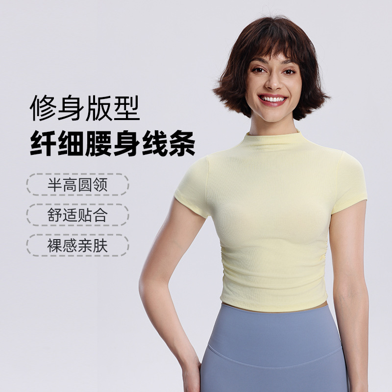 2026 신상 요가 반팔 티셔츠 여성용 짧은 스타일 슬림핏 하프 하이넥 주름 허리 요가복 스포츠 캐주얼 탑스토어 가기