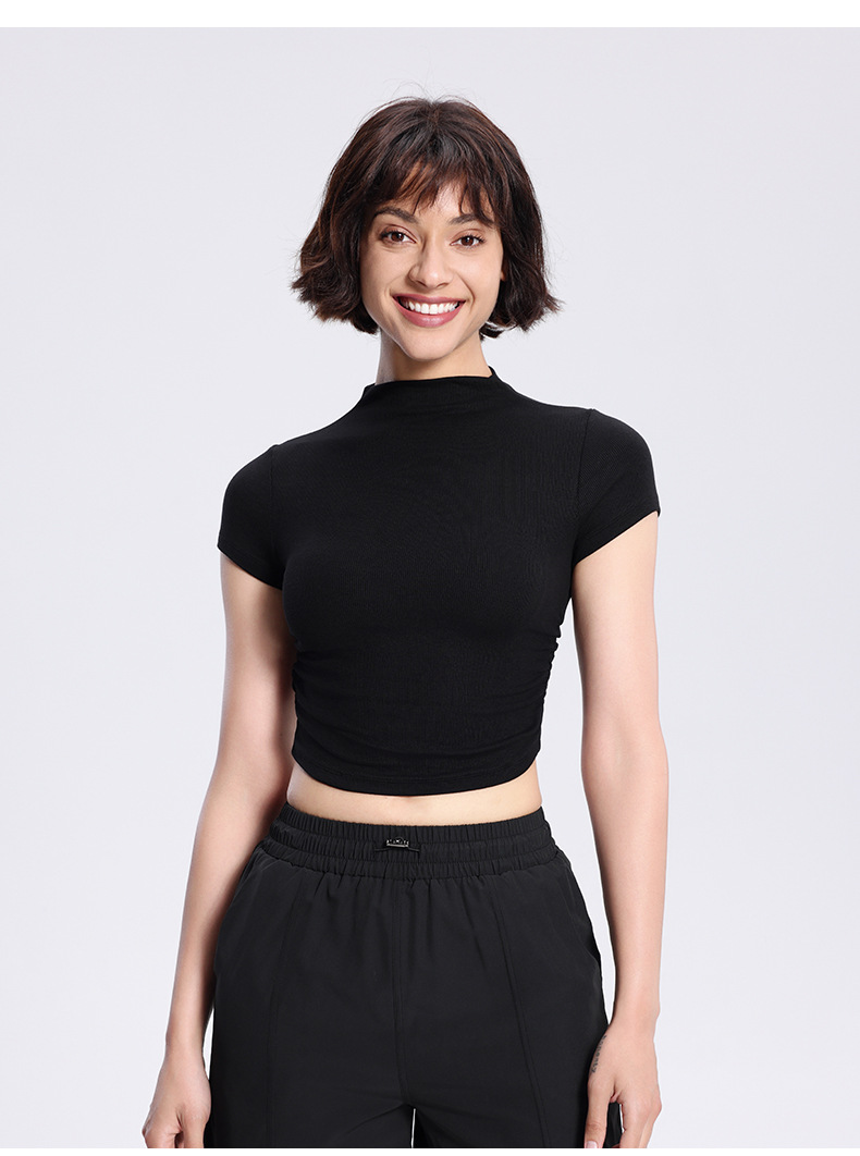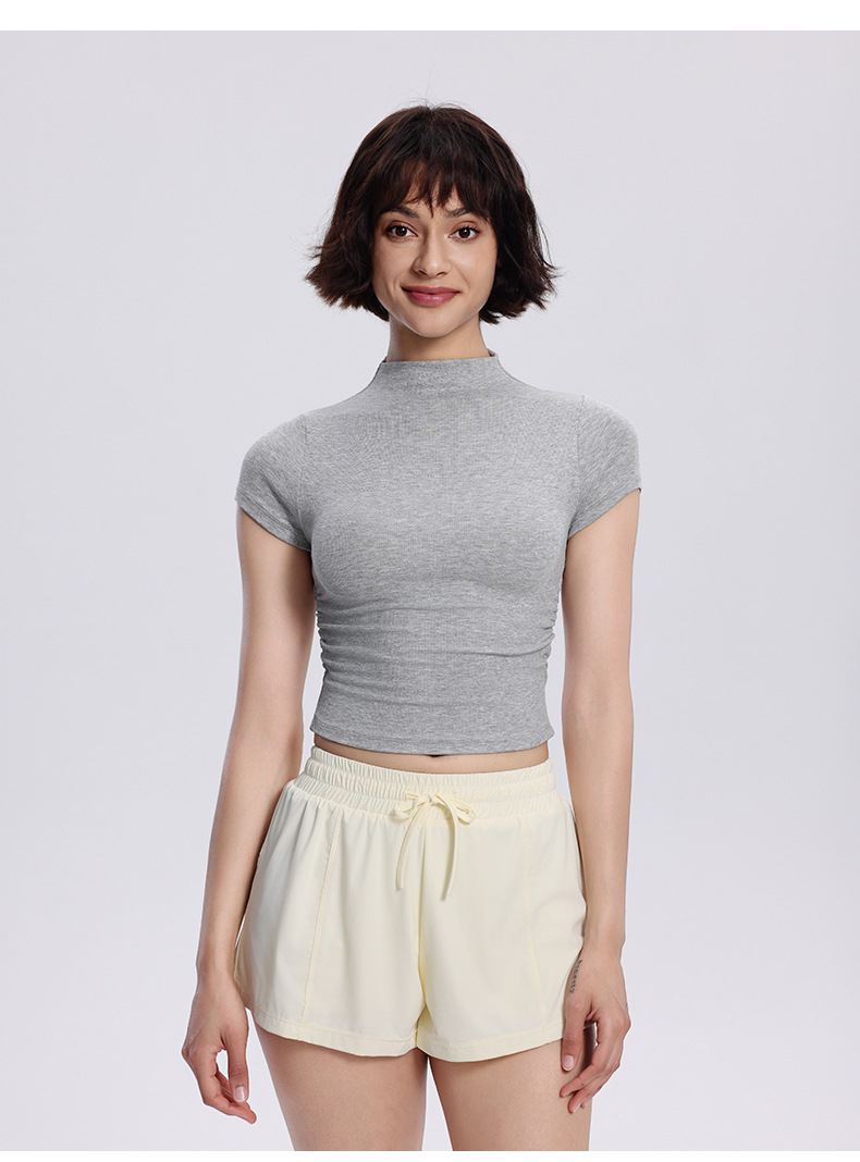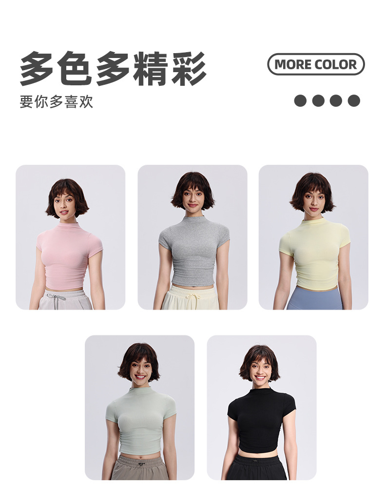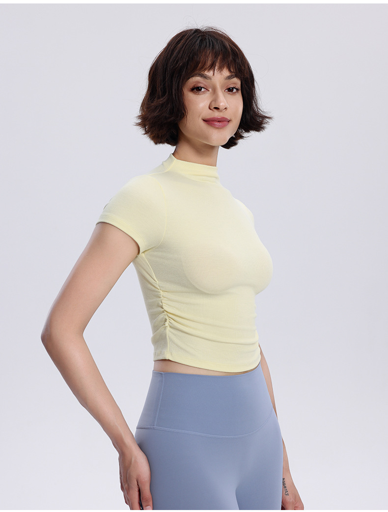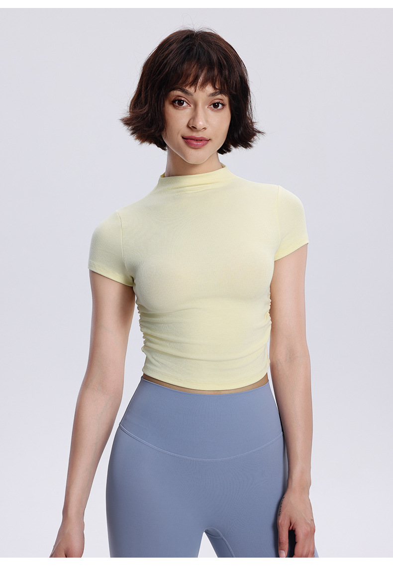 2026 신상 요가 반팔 티셔츠 여성용 짧은 스타일 슬림핏 하프 하이넥 주름 허리 요가복 스포츠 캐주얼 탑스토어 가기