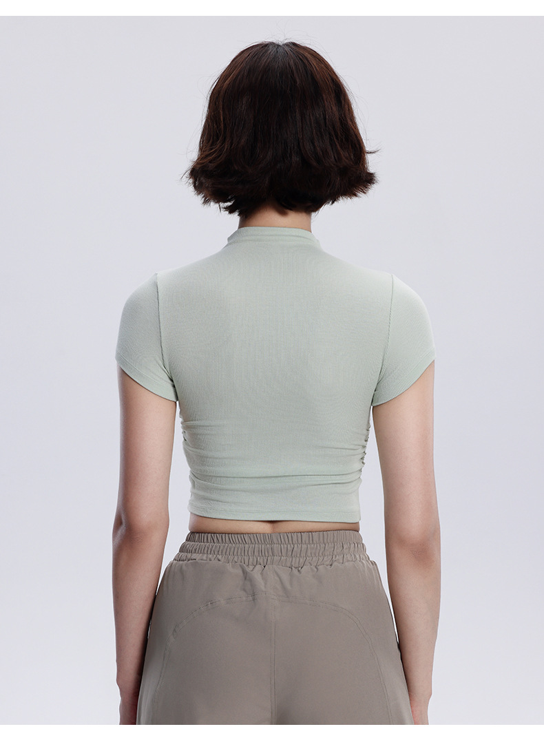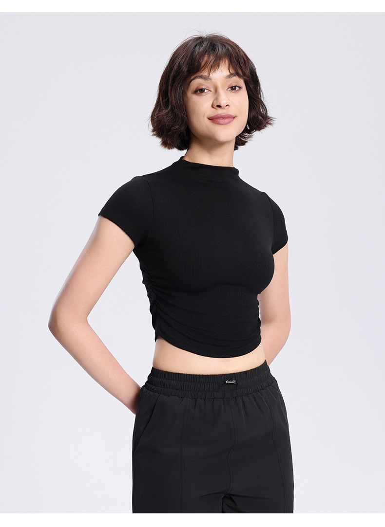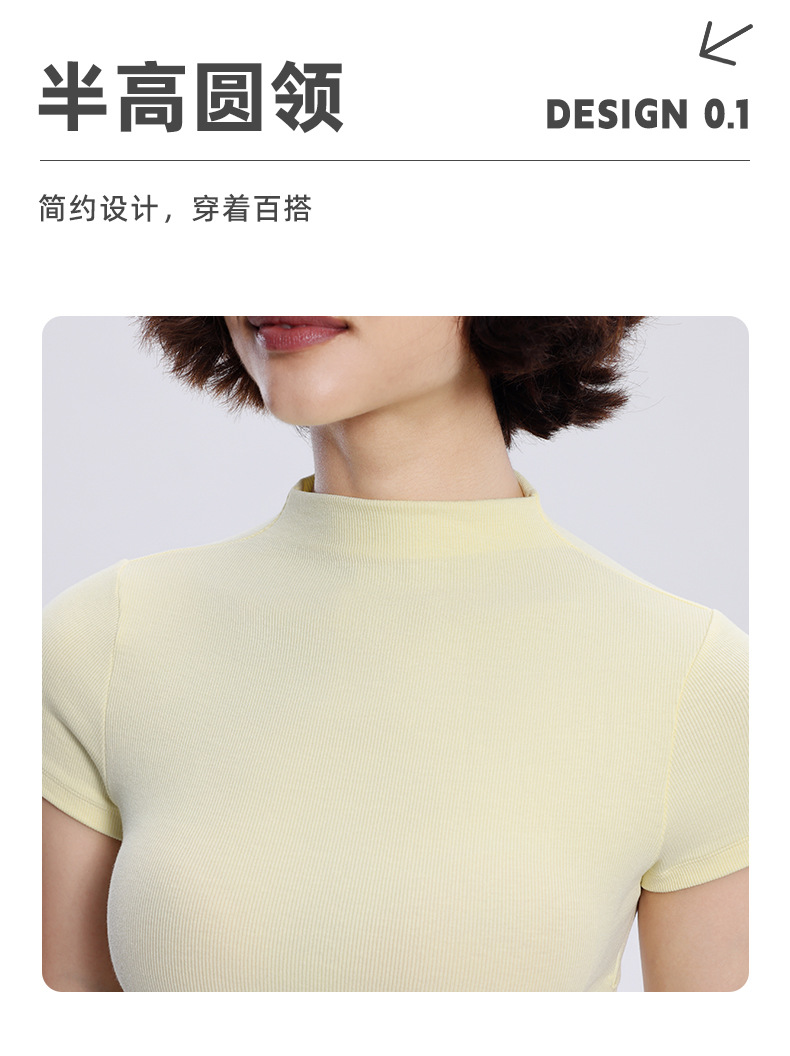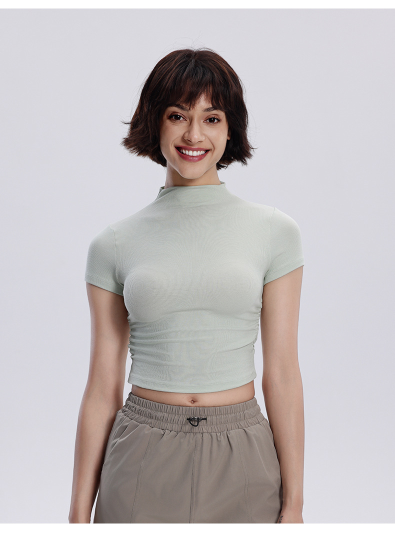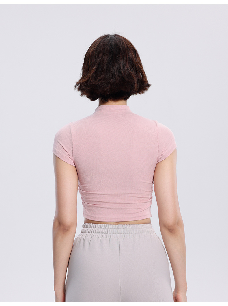 2026 신상 요가 반팔 티셔츠 여성용 짧은 스타일 슬림핏 하프 하이넥 주름 허리 요가복 스포츠 캐주얼 탑스토어 가기