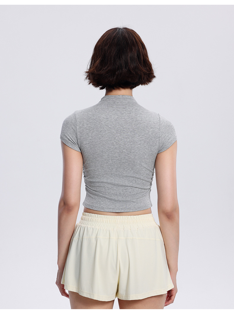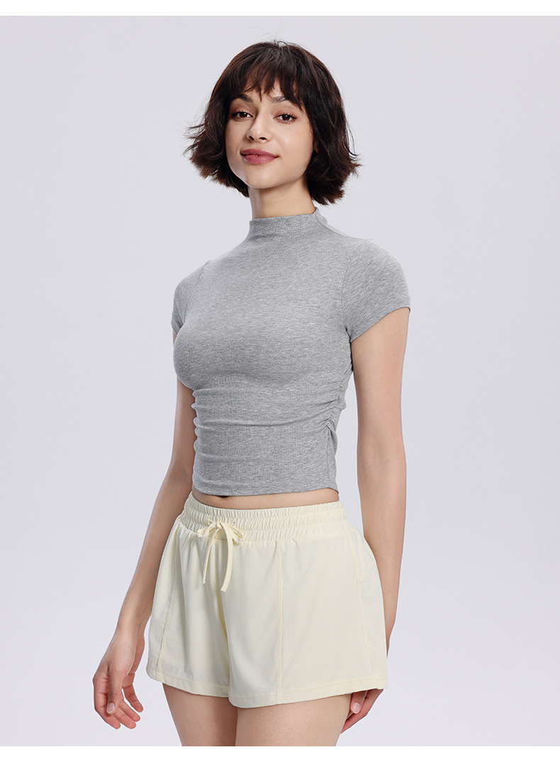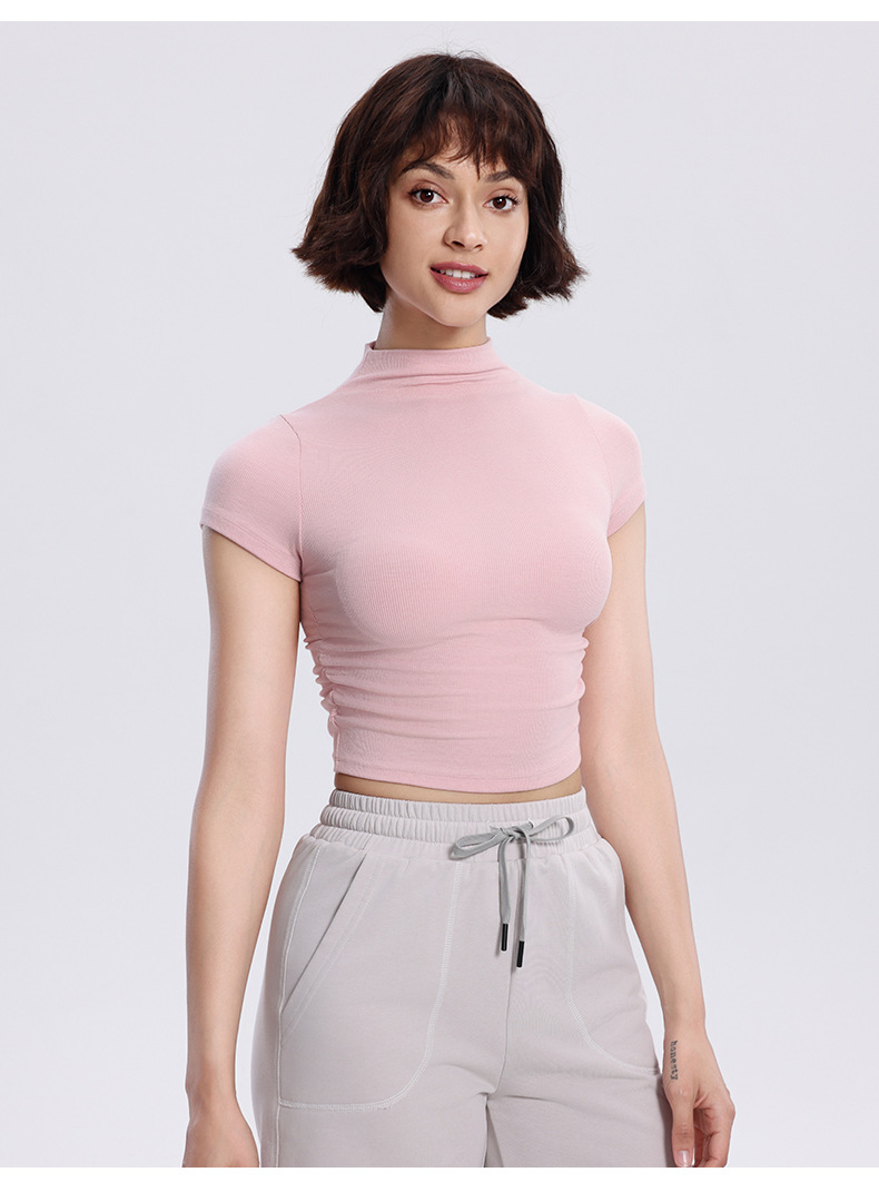 2026 신상 요가 반팔 티셔츠 여성용 짧은 스타일 슬림핏 하프 하이넥 주름 허리 요가복 스포츠 캐주얼 탑