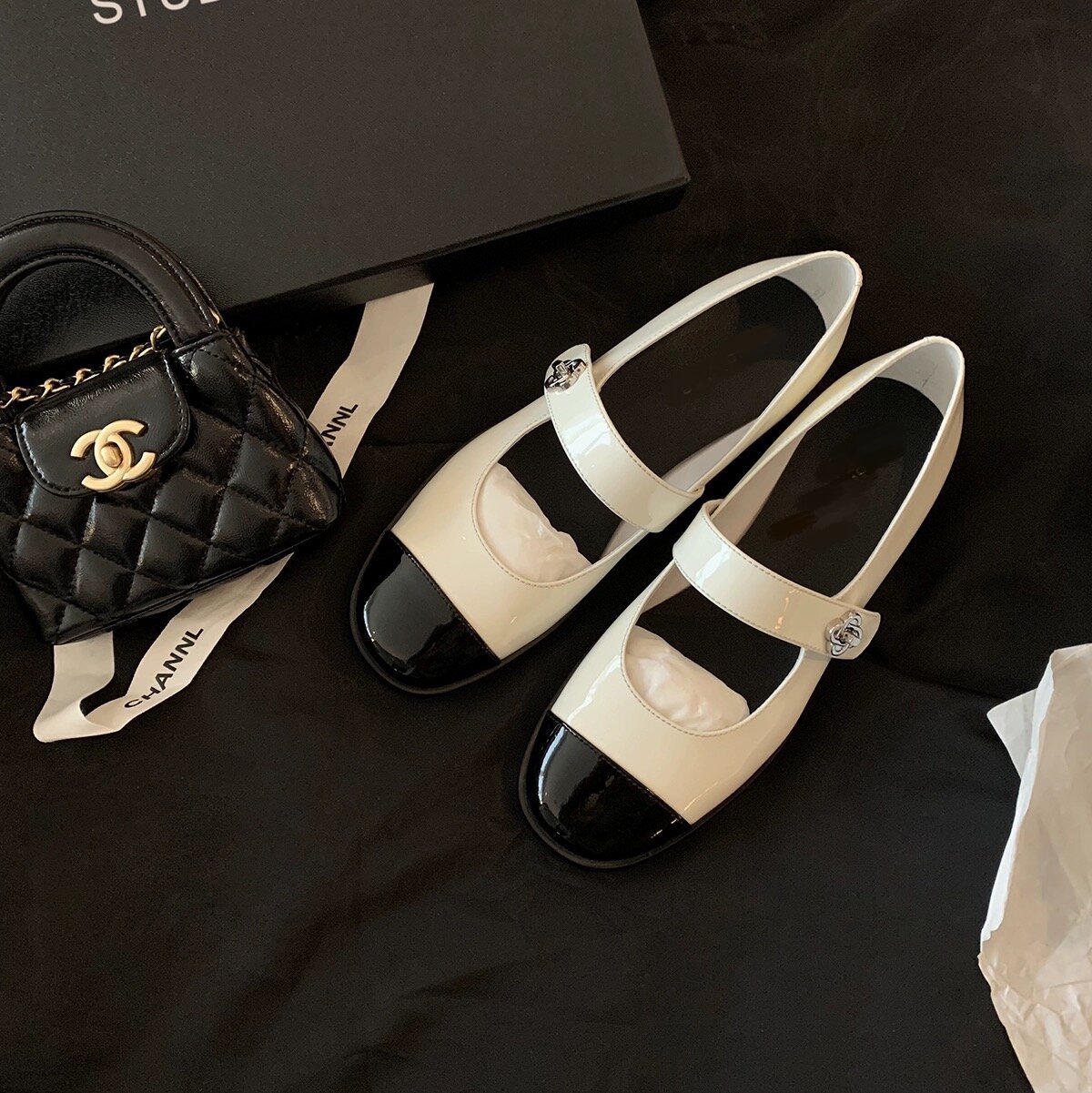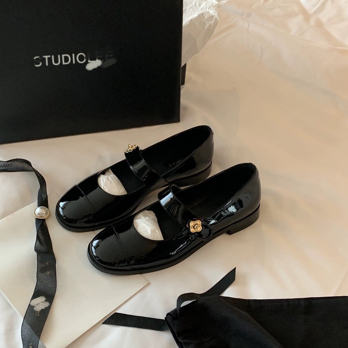 포도 엄마 스튜디오 ~ 리 오드리 디너 파티 ~ 클래식 샤넬 스타일 컬러 매칭 메리 제인 싱글 레이어 신발 여성스토어 가기