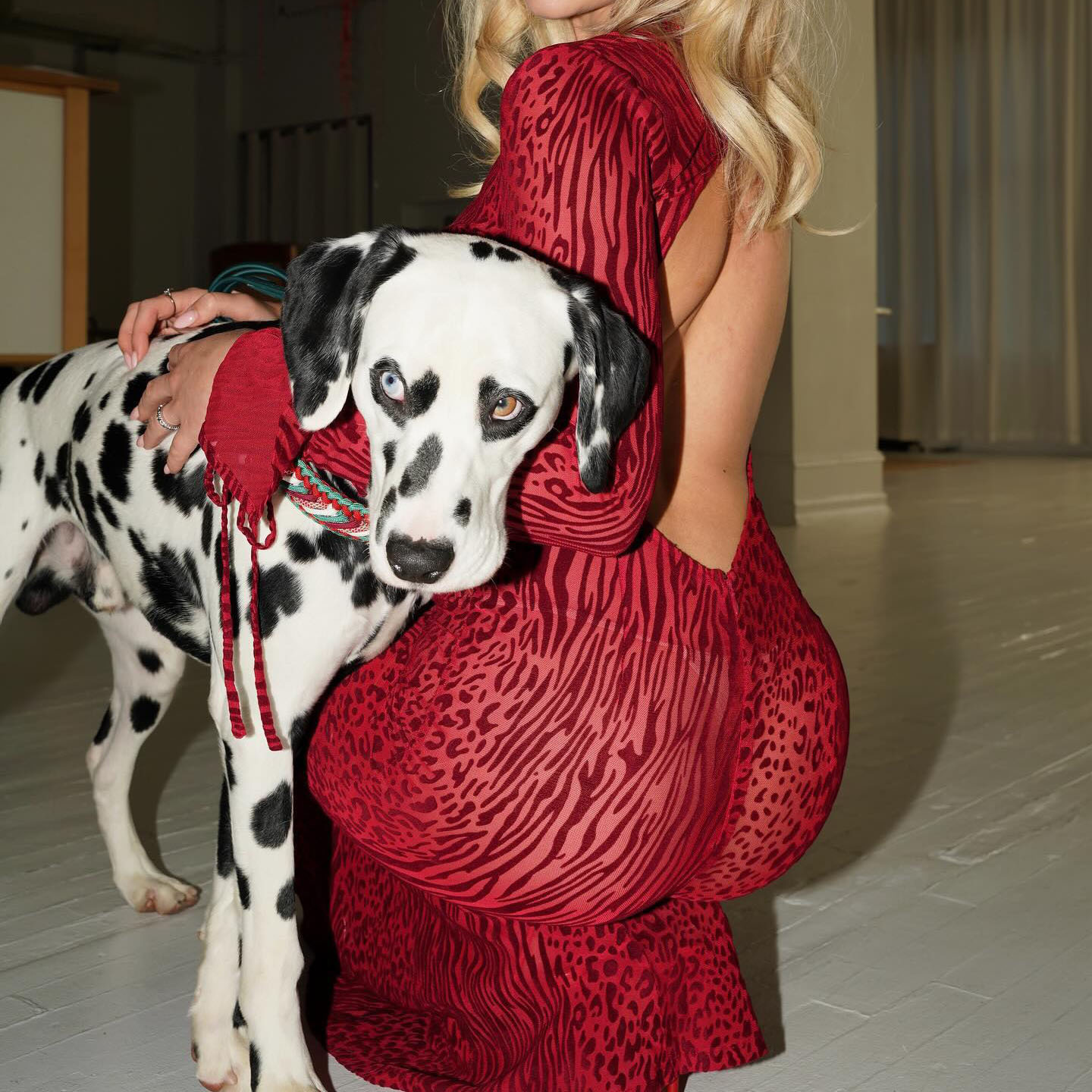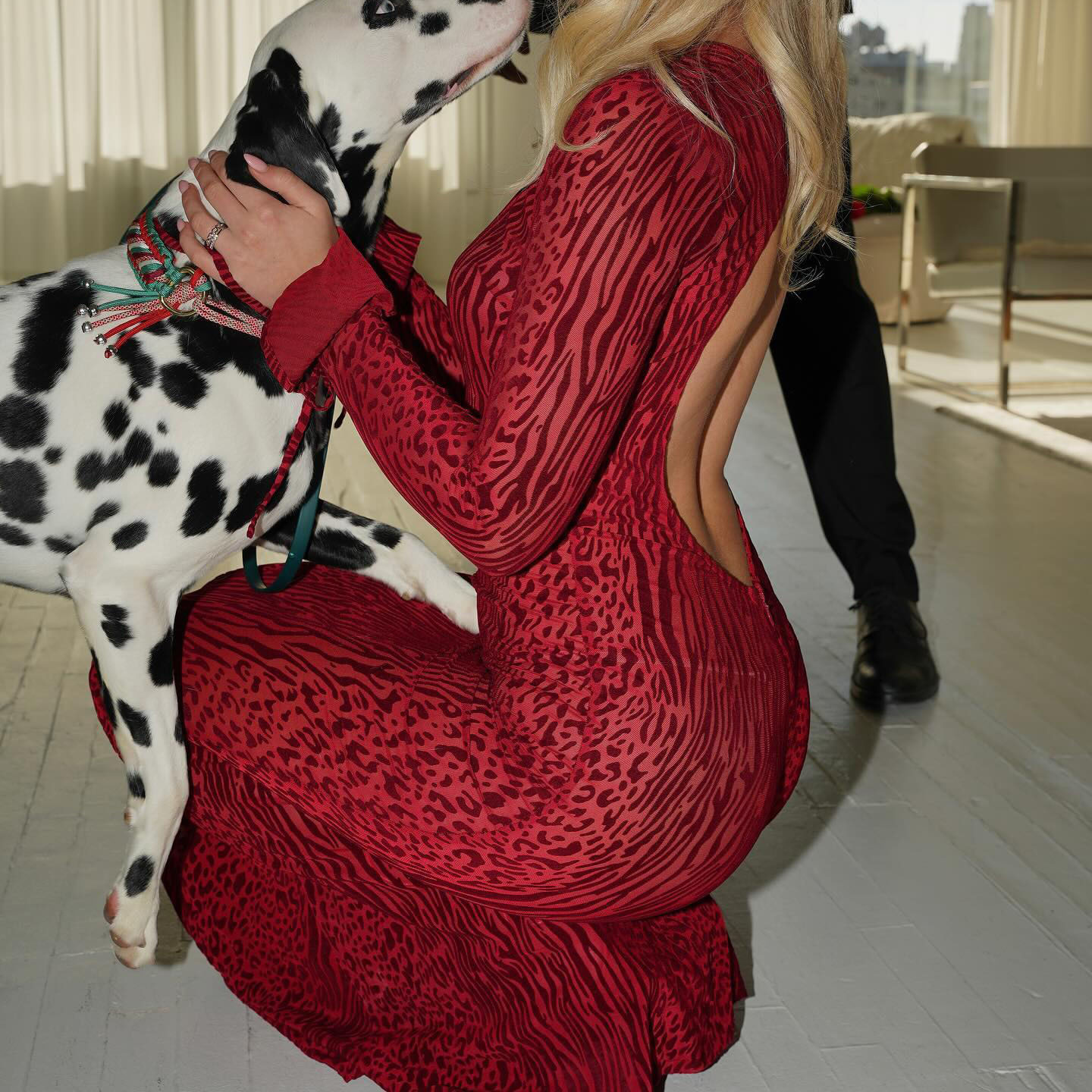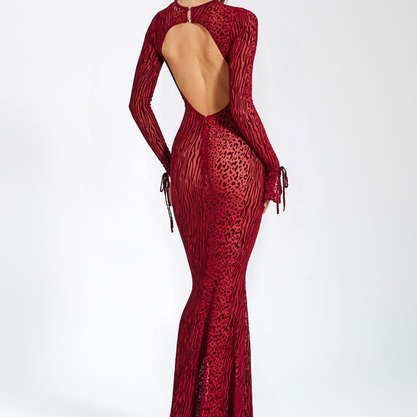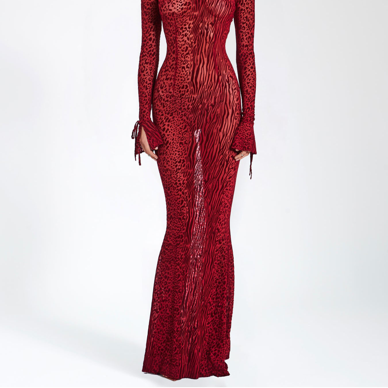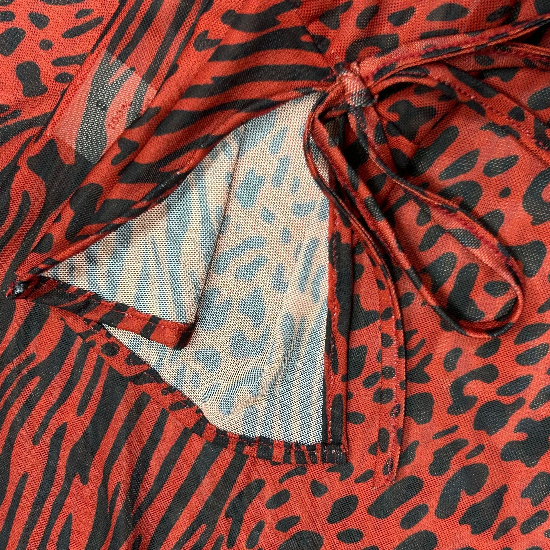 유럽과 미국의 국경 간 섹시한 백없는 마이크로 벨 소매 피쉬 테일 원피스 레드 레오파드 무늬 메쉬 인쇄 긴 여름 원피스스토어 가기