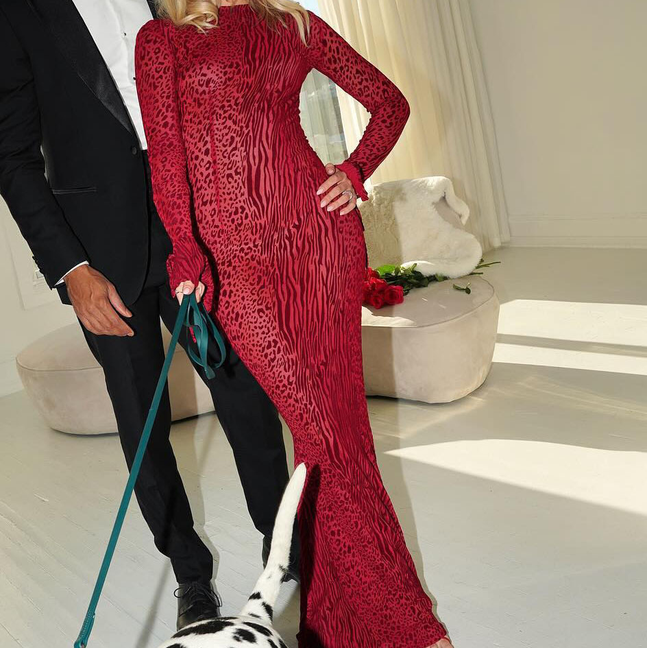 유럽과 미국의 국경 간 섹시한 백없는 마이크로 벨 소매 피쉬 테일 원피스 레드 레오파드 무늬 메쉬 인쇄 긴 여름 원피스