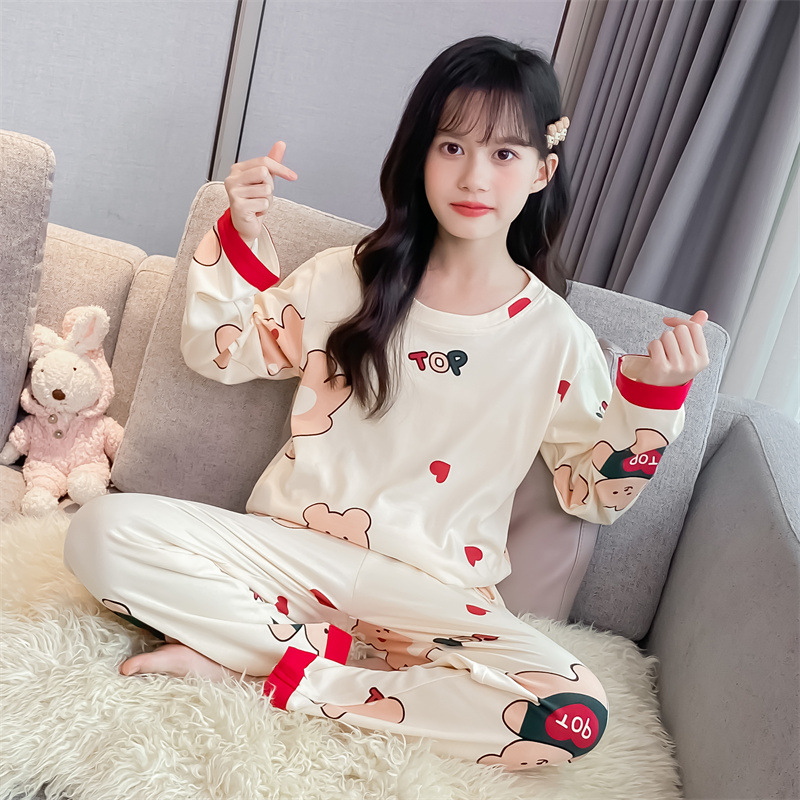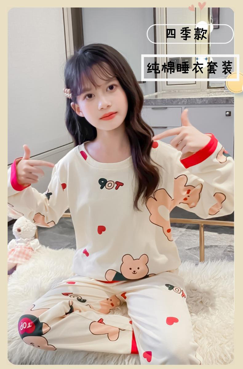 어린이 잠옷 순면 소녀 봄과 가을 2023 새로운 스타일 소녀 서양식 큰 어린이 가정복 세트 가을과 겨울스토어 가기