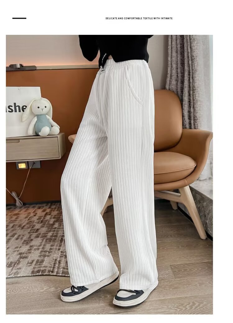 여자 바지 서양식 야외 캐주얼 스트레이트 와이드 레그 바지 어린이 겨울 옷 중 큰 어린이 소녀의 가을과 겨울 기모 바지