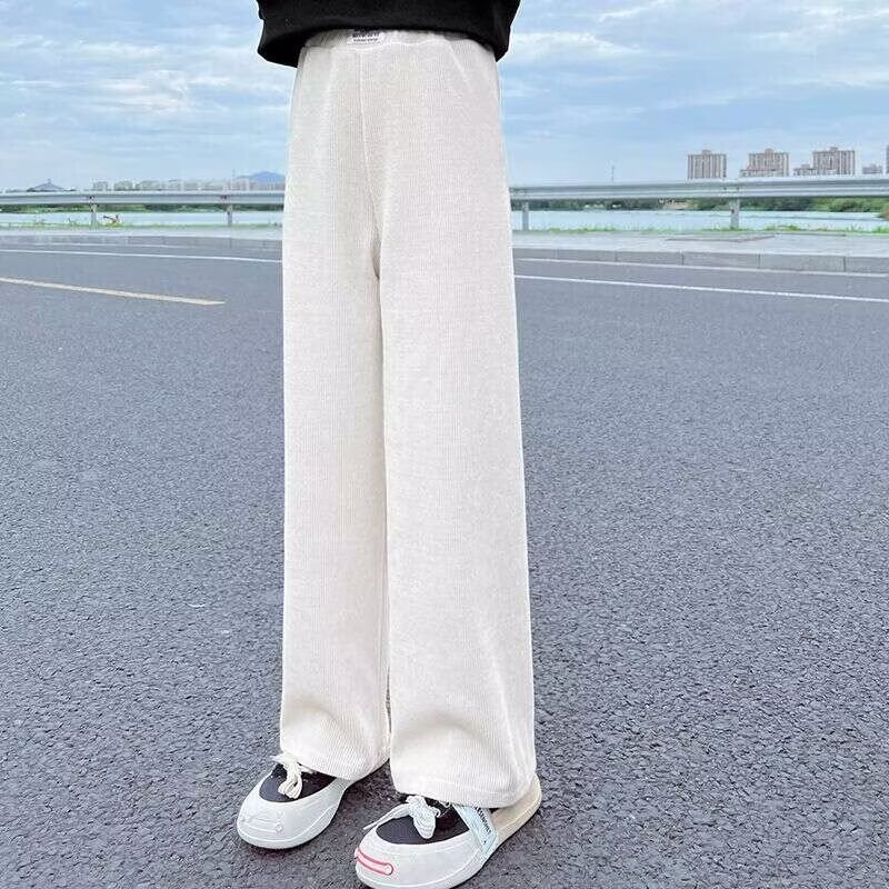 여자 바지 서양식 야외 캐주얼 스트레이트 와이드 레그 바지 어린이 겨울 옷 중 큰 어린이 소녀의 가을과 겨울 기모 바지스토어 가기