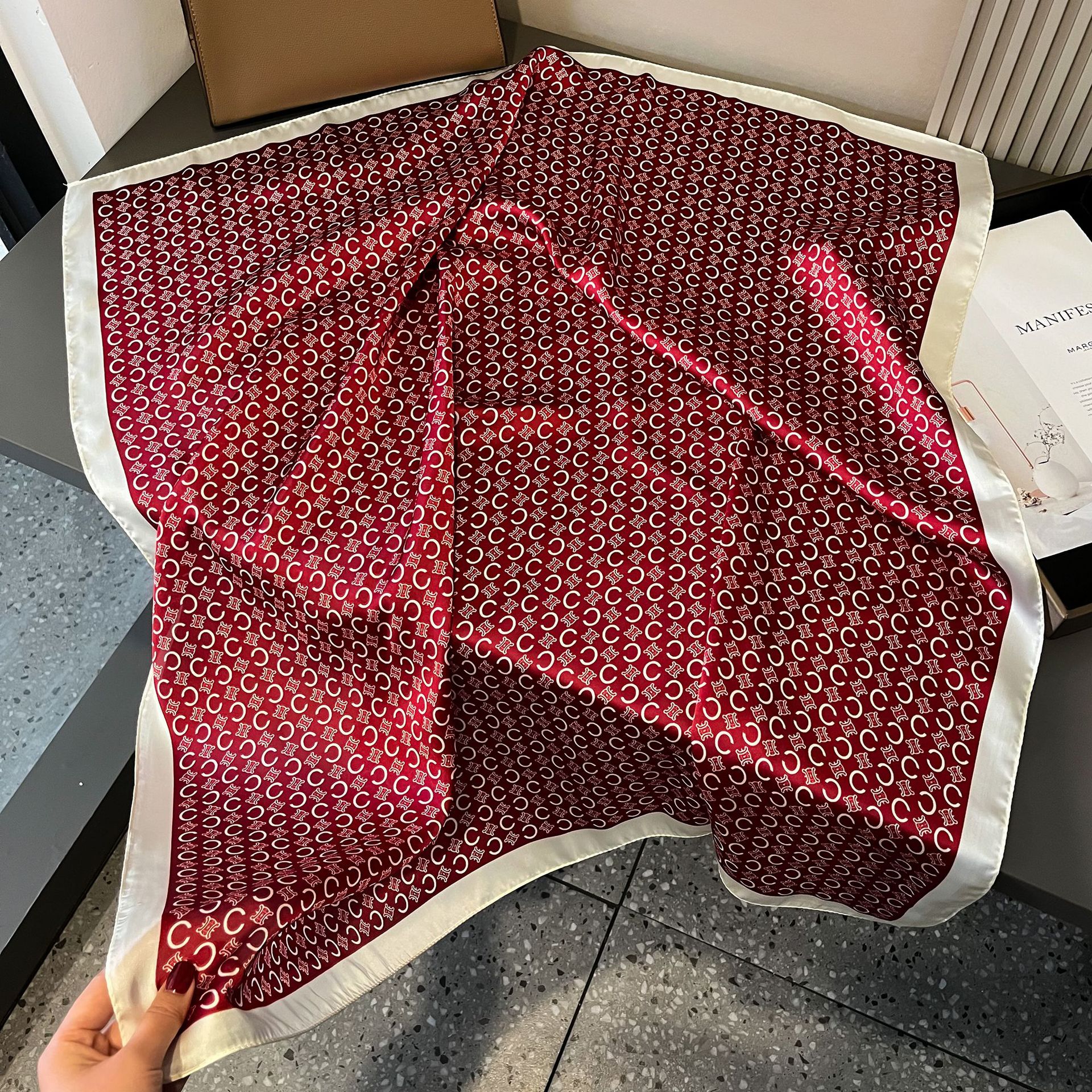 패션 터번 새로운 얇은 서양식 올 매치 패치 워크 컬러 꽃 인쇄 실크 실크 스카프 새틴