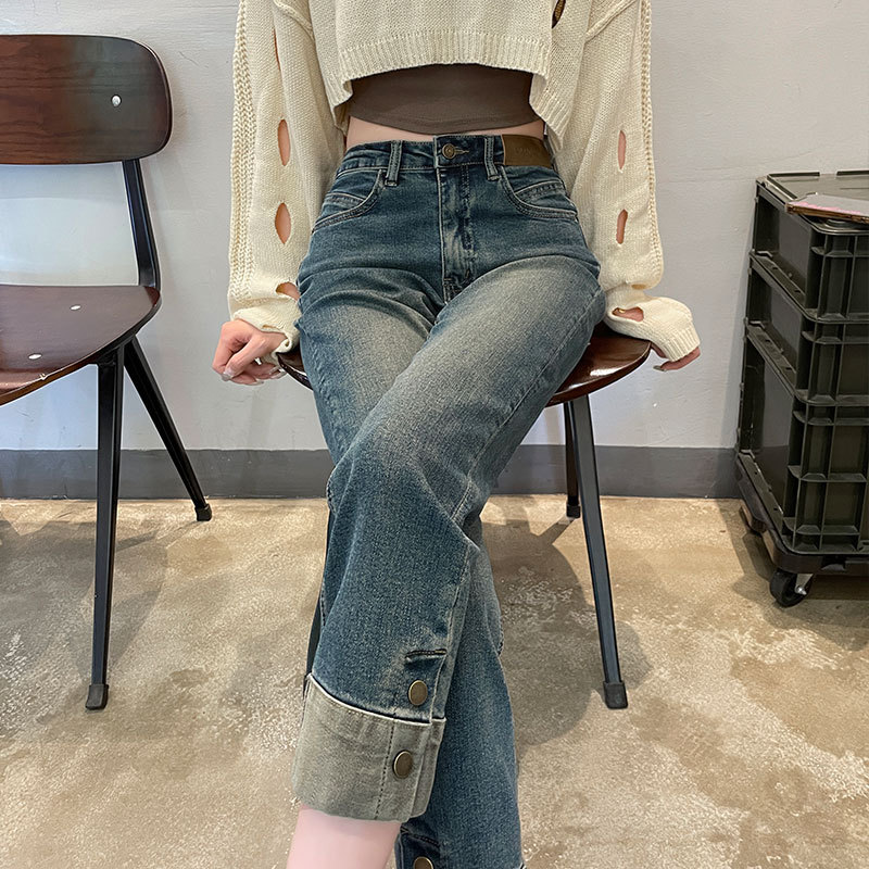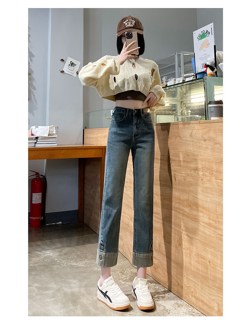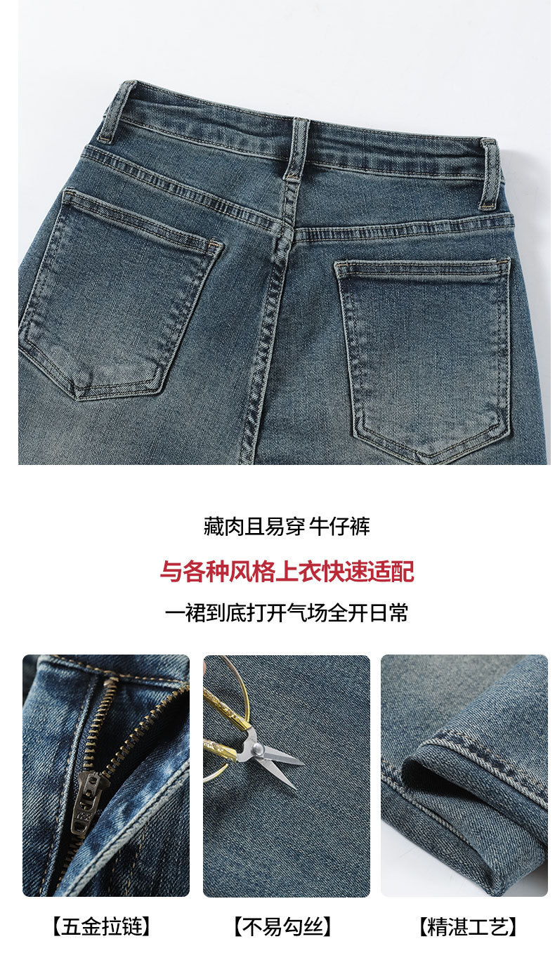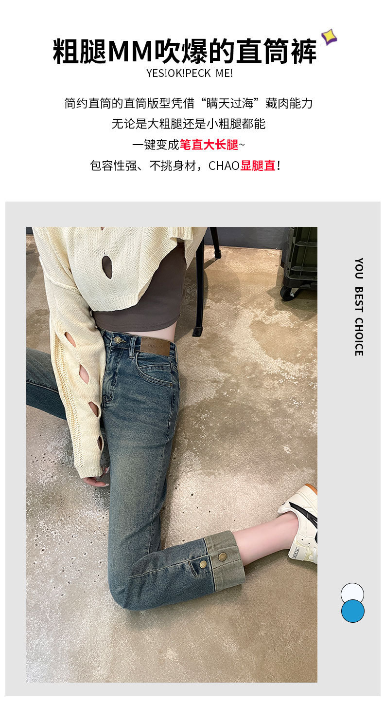 여성용 시멘트 그레이 스모크 파이프 청바지 2025 여름 신상 하이웨이스트 슬림핏 8부 스트레이트 팬츠 바게트 팬츠스토어 가기