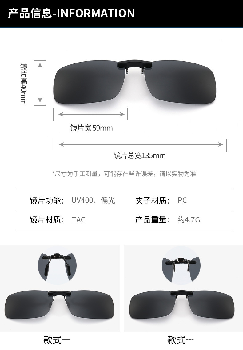 편광 선글라스 클립 TR 울트라 라이트 유니섹스 색상 변경 낮과 밤 이중 사용 근시 선글라스 교수형 조각 운전 안경