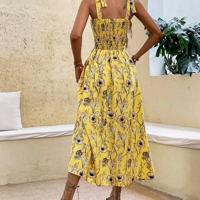 2024 국경 간 새로운 유럽 및 미국 대외 무역 여성 의류 이베이 아마존 섹시한 민소매 레이스 업 인쇄 패션 미디 원피스스토어 가기