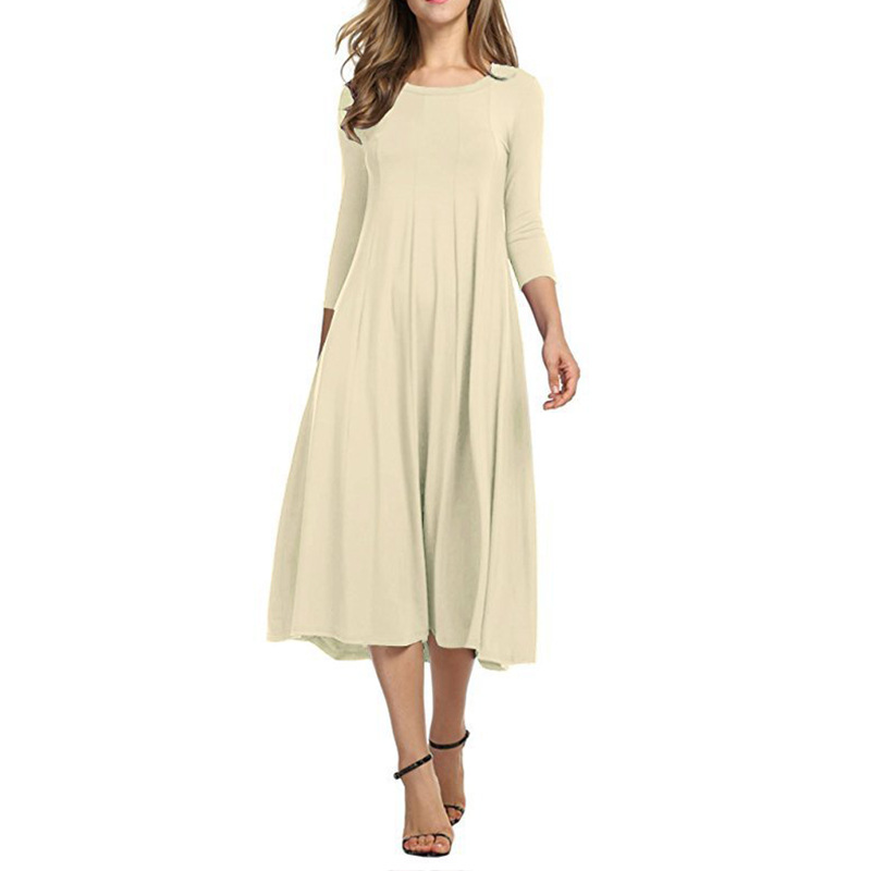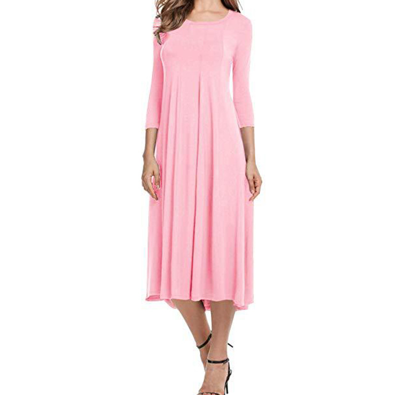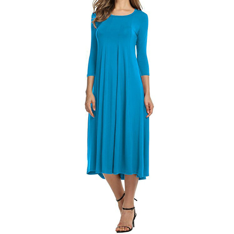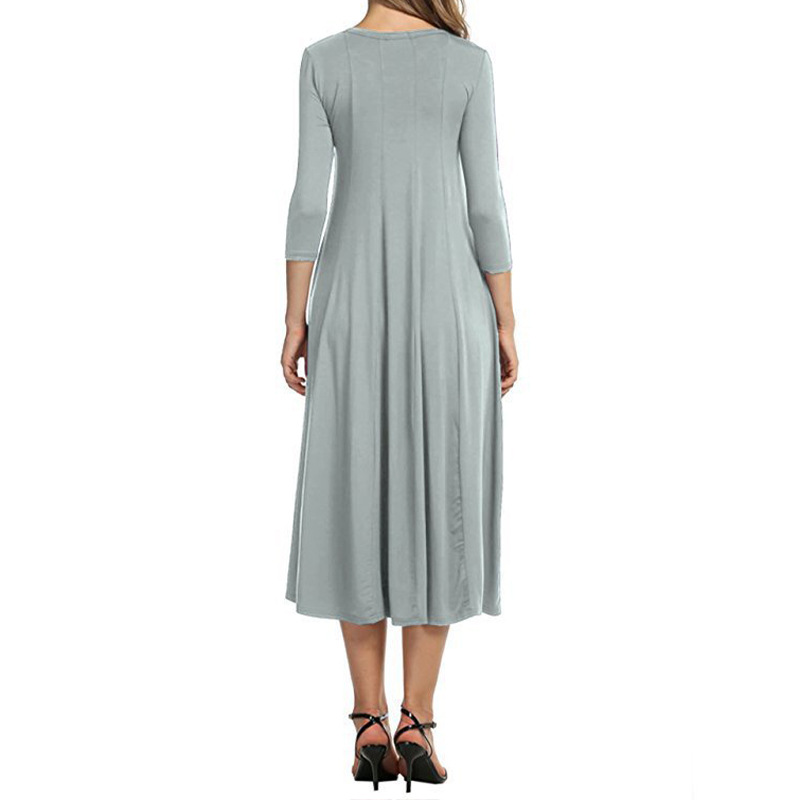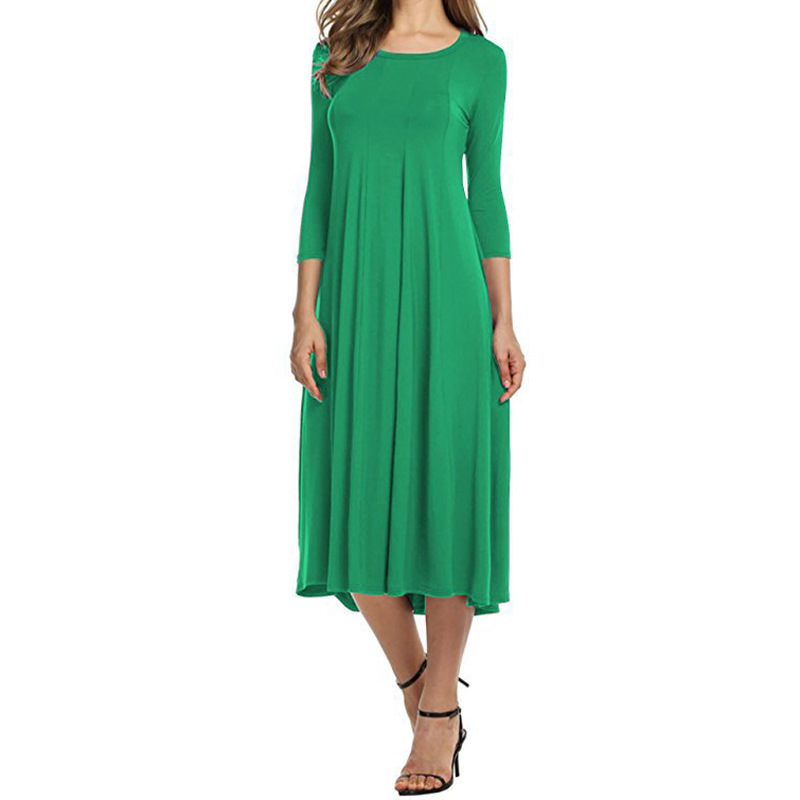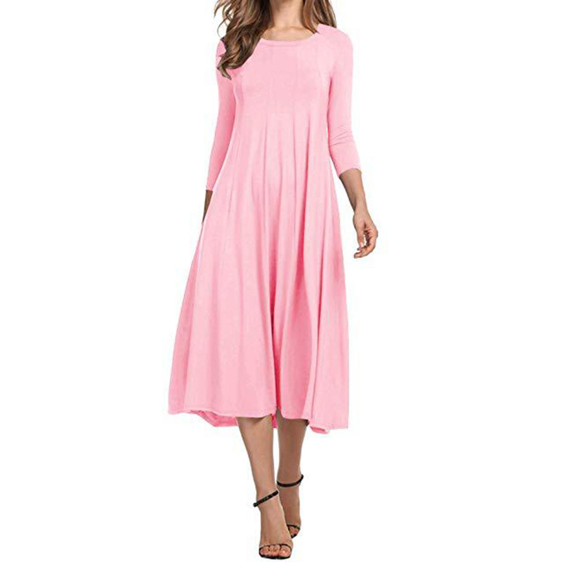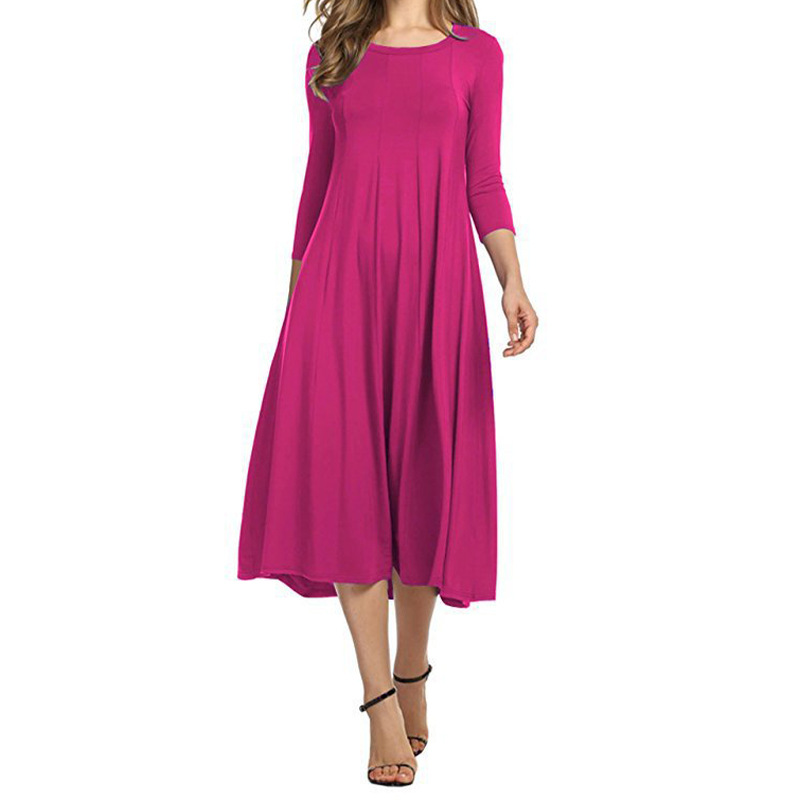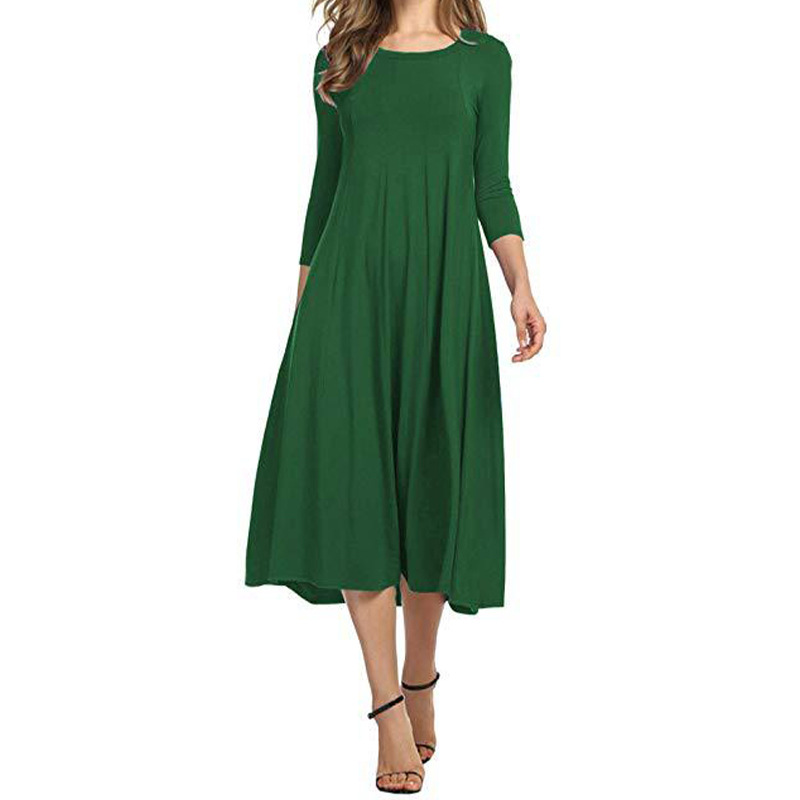 2024 유럽과 미국의 가을 새로운 아마존 이베이 국경 라운드 넥 하프 소매 단색 대형 스윙 원피스
